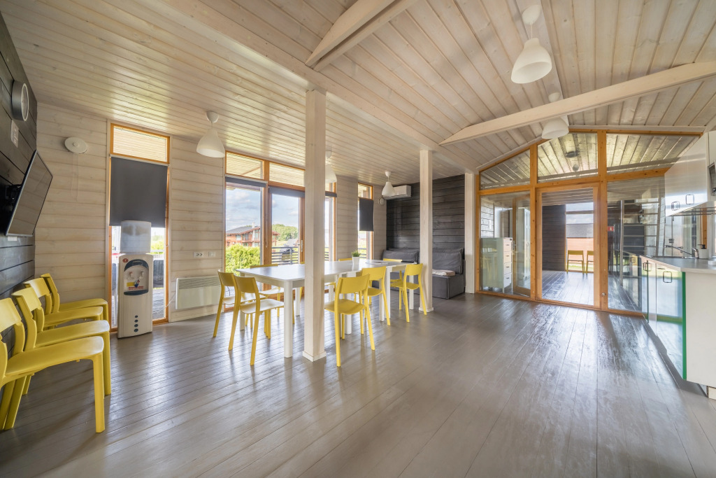 На территории располагается четырёхзвёздочный отель с уютным рестораном, клубный дом, просторный конференц-зал и множество других локаций. Здесь гостей порадуют многообразием развлекательных услуг. Гостям предлагается отдых в любое время года. Зимой это катание на коньках, лыжах, санях и ватрушках, а также посещение СПА зоны с открытым подогреваемым бассейном, финской сауной, русской парной. Летом можно рыбачить, кататься на велосипедах по освещаемой эко-тропе, играть в гольф, футбол, волейбол и теннис.