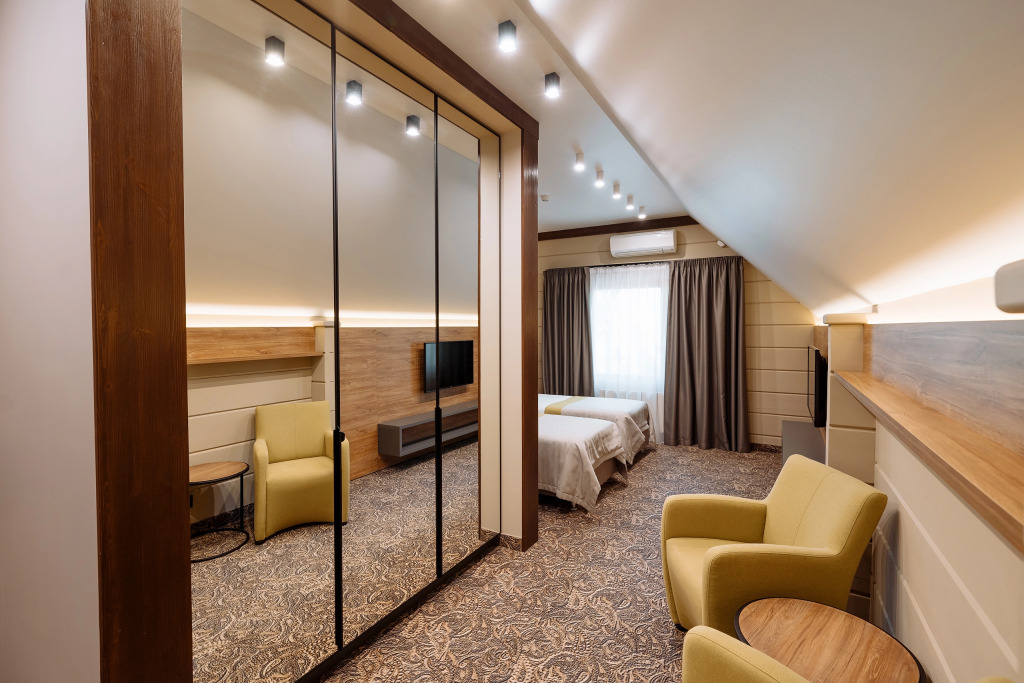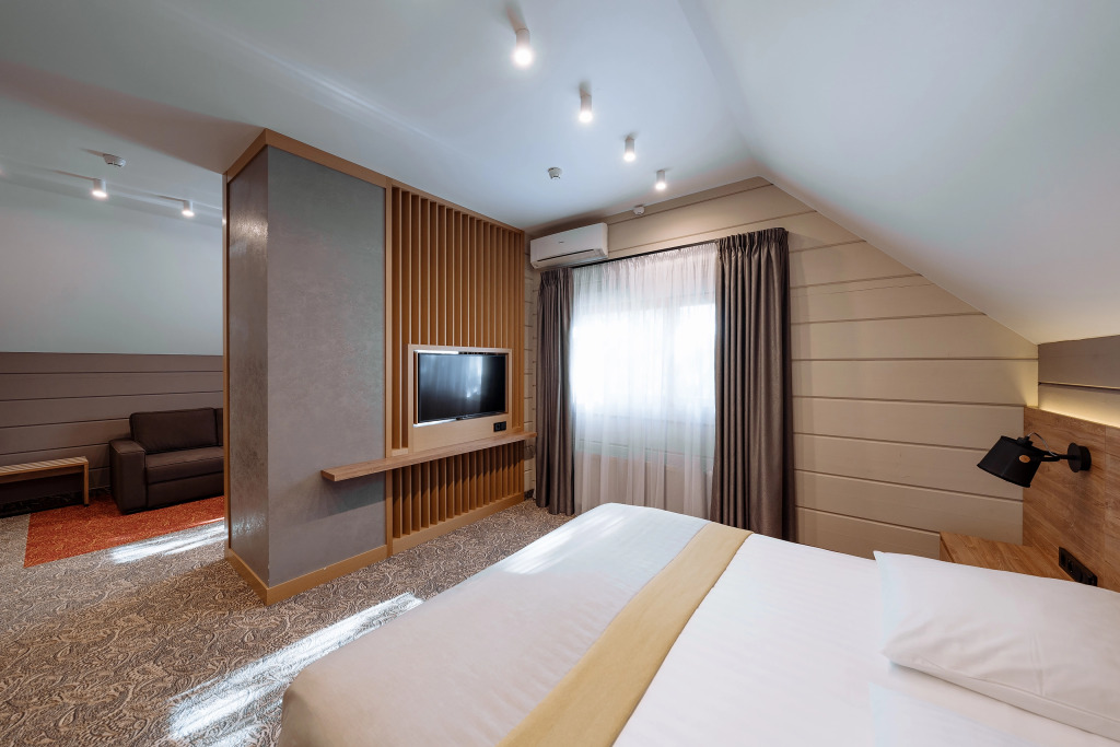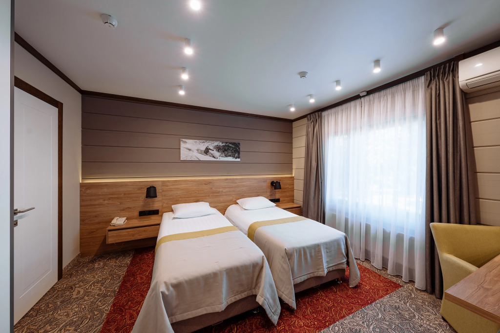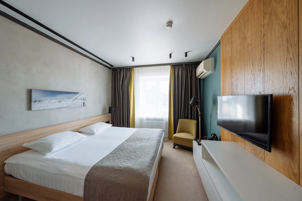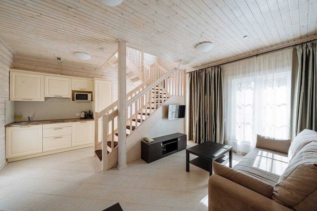В отеле представлено 3 формата проживания — номера в отеле, 2-этажные апартаменты, коттеджи с 2 и 3 спальнями.