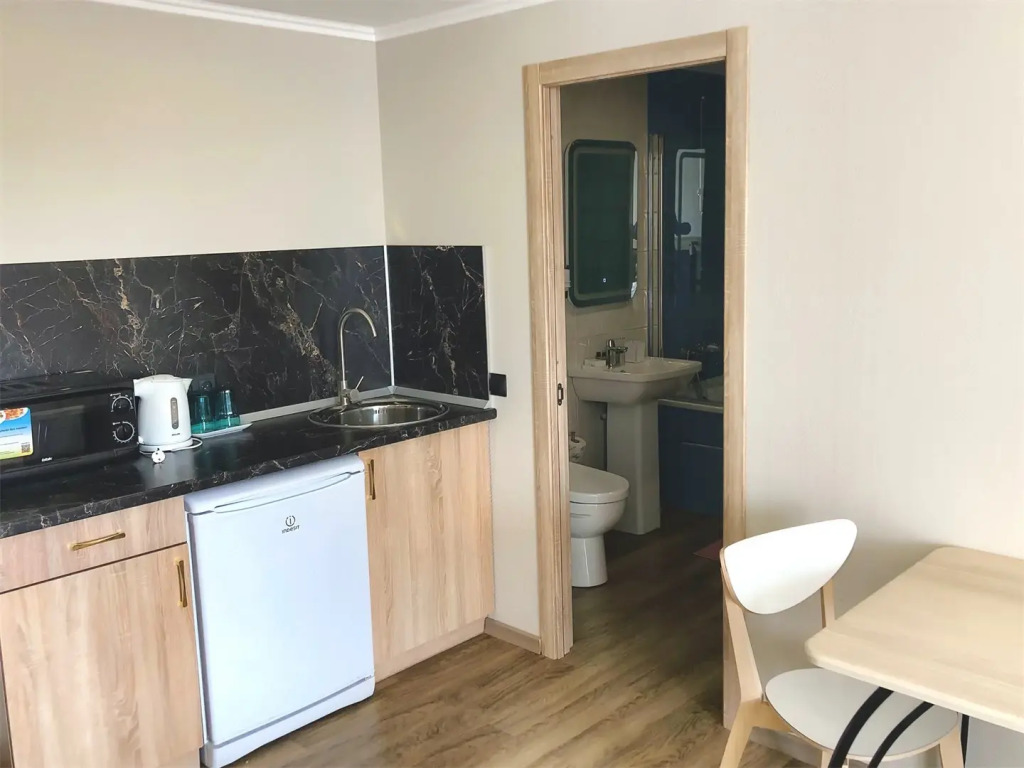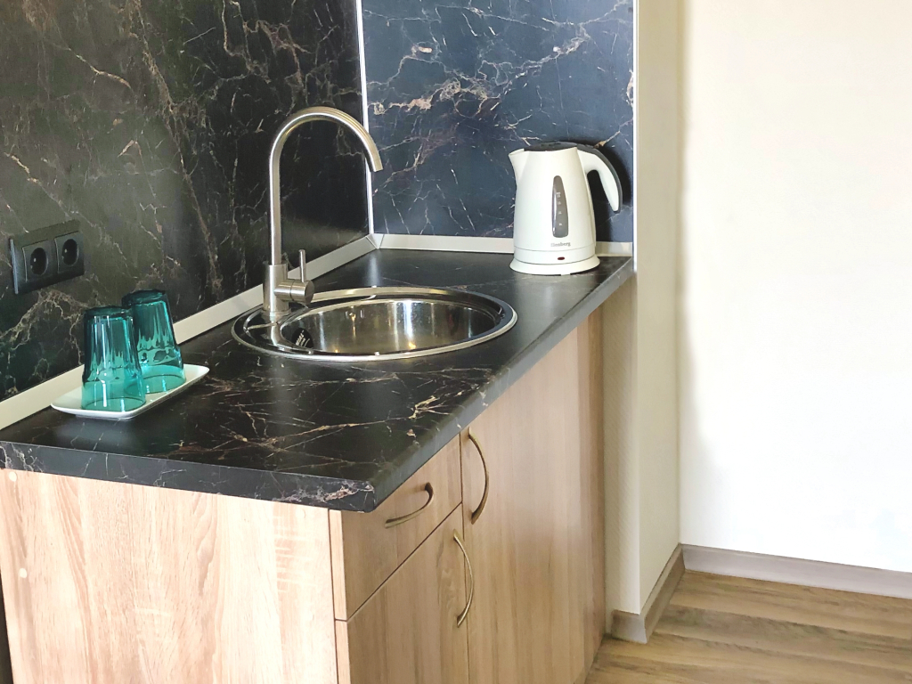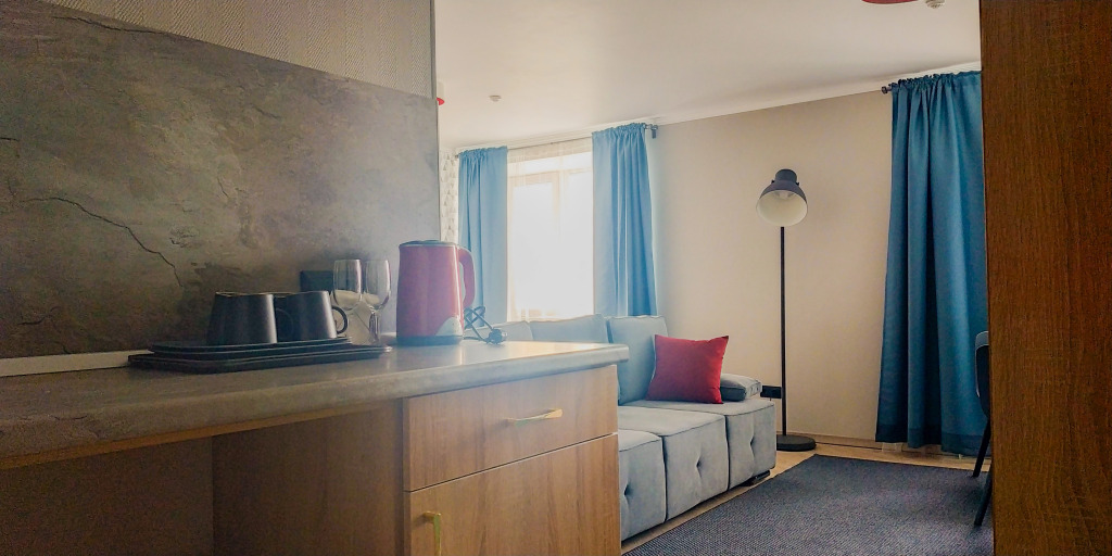 При стоимости номера 12 тыс/сут в номере нет чайникаи даже нет кулера на этаже. Единственный кулер на входе в отель, на первом этаже. Мы жили на 9 и ждать лифт, который не быстро приезжает, чтобы попить, не очень.