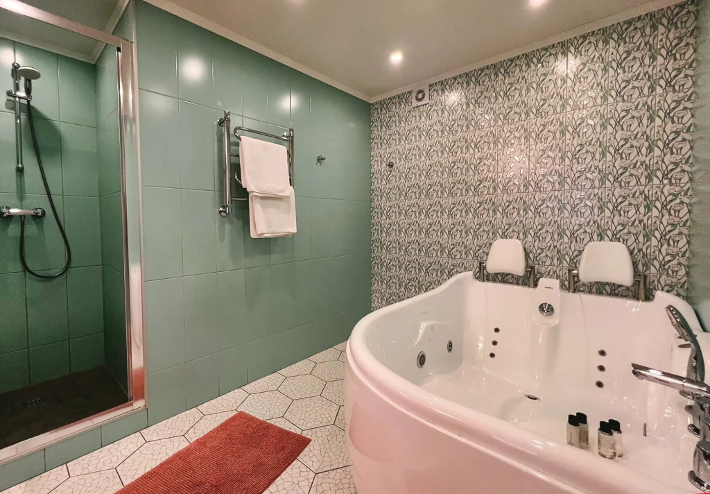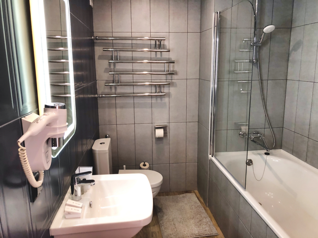 Душевая очень маленькая, как и сама ванная комната, темно, одна тусклая лампочка, очень не хватает света. Периодически из крана идет грязная вода. Слив в раковине засорен. Три лифта на корпус в 10 этажей, один большой, но с маленькой грузоподъёмностью, два остальных, оптимально, на два человека, трое уже "как селедки в банке". Получается что ждешь лифта очень долго.