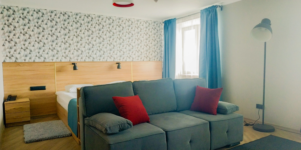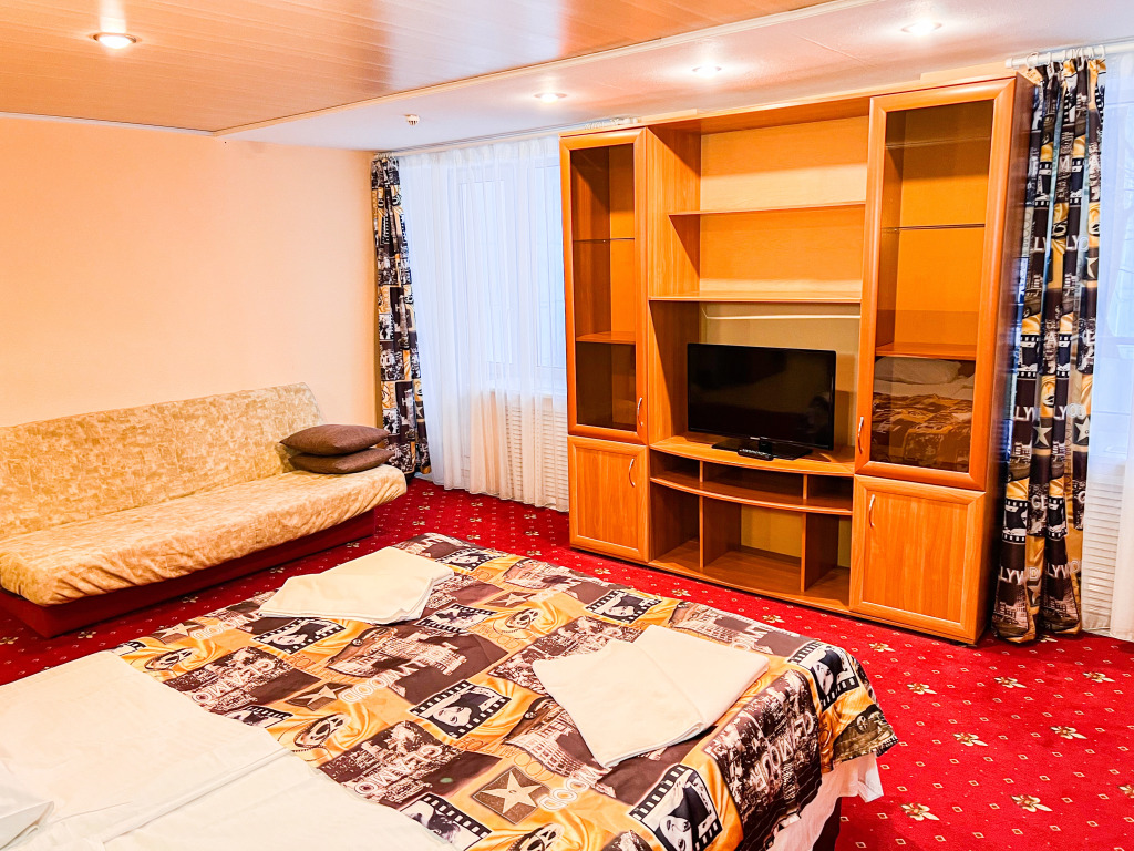 В целом, отель требует ремонта, очень требует! Ужасная слышимость, стены картонные. В номерах ремонт косметический, кондиционер отсутствует, духота летом неимоверная, как в бане. В номере есть холодильник, но он шумит так, что лучше бы его не было! Нет чайника, нет чашек, из посуды два стакана. Бутилированной воды в номере тоже нет, даже при заселении. Постоянный шум, за окном, что то вечно ремонтируют, режут металл, раздувают листья и это происходит в течение всего дня. За неделю, что я здесь провела, не было ни дня, чтобы было тихо, ощущение что ты живешь на стройке!!! Подремать днем совершенно не представляется возможным. В коридорах с утра и до часов четырех дня гудит пылесос, ругаются уборщицы, слышно все так, как будто это все происходит у вас в номере. Отдохнуть в тишине не выйдет. Так же, в холле жилого этажа располагается бильярд, в номере слышно, как стучат по шарам.