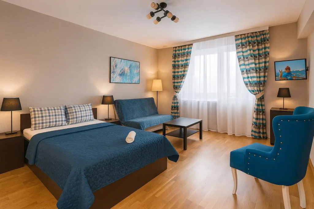 Сотрудники апартаментов поддержат беседу на английском и русском.