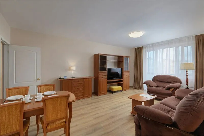 В отеле 155 номеров квартирного типа различных категорий. Все апартаменты состоят из нескольких комнат. Большинство апартаментов имеют полноценную, укомплектованную бытовой техникой и стиральной машиной, кухню.