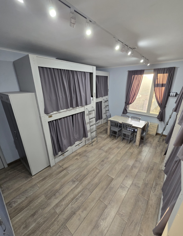 Жила в двух номерах (так получилось, сначала забронировала на 2 дня, потом продлила проживание, а свободная кровать оставалась только в другом номере), даже если бы захотела придраться - ну не к чему. Впервые за свои путешествия не расстроилась бы, если бы досталась верхняя кровать - здесь не шаткие лестницы наверх, а полноценные ступеньки, это очень удобно. Каждая кровать имеет шторки, розетку, свой отдельный свет, полочку. Подушка удобная, постельное чистое, без дыр. Полотенце большое (а в номере на 6 мест ещё и маленькое дадут для лица). Жила, можно сказать, в самый пик морозов, на улице было -27, да, конечно, в трусах не походишь, но было тепло, даже второе одеяло не потребовалось. Хотя, честно признаюсь, прочитав прошлые отзывы, очень боялась. Отдельное спасибо руководству хостела за то, что согревали комнаты, как могли: кондиционер работал всю ночь, дополнительно принесли напольные обогреватели. Кажется, видела обогреватель даже на общей кухне.