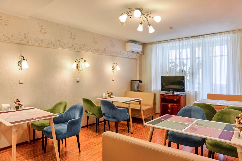 В номере вы найдёте телевизор. Оснащение зависит от выбранной категории номера.