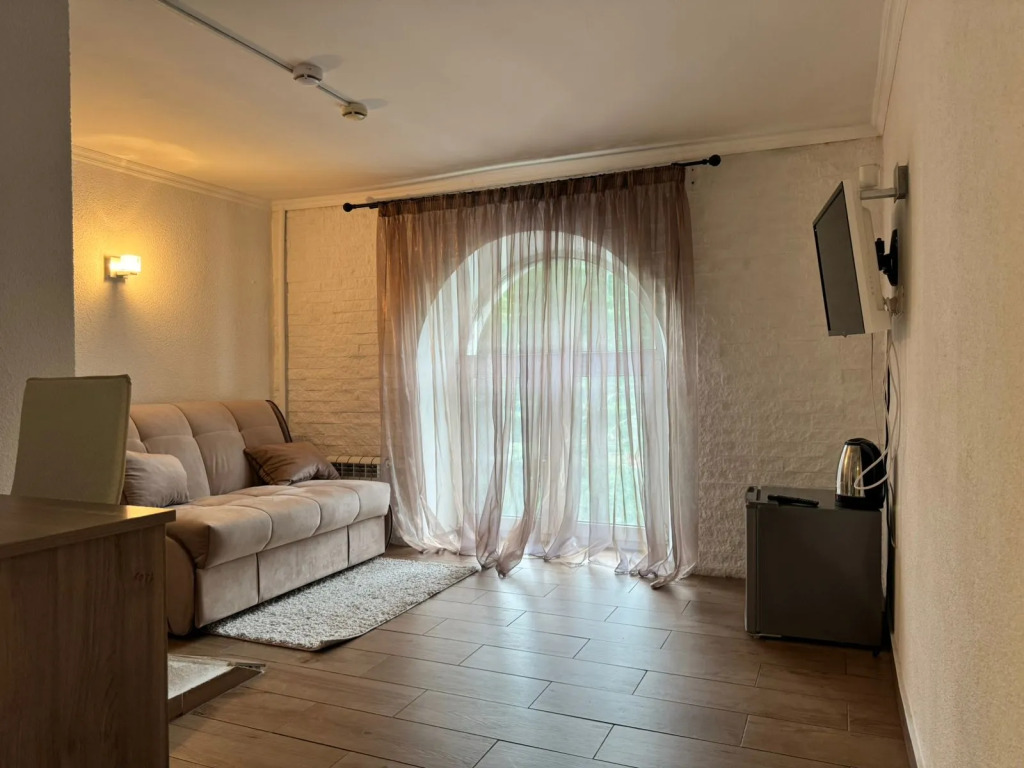 Номер уютно обставлен и оснащён необходимым, чтобы отдохнуть после долгого и насыщенного дня. Имеются телевизор и халат. Перечисленные услуги есть не во всех номерах.