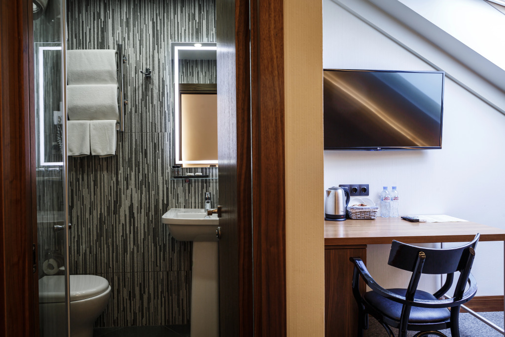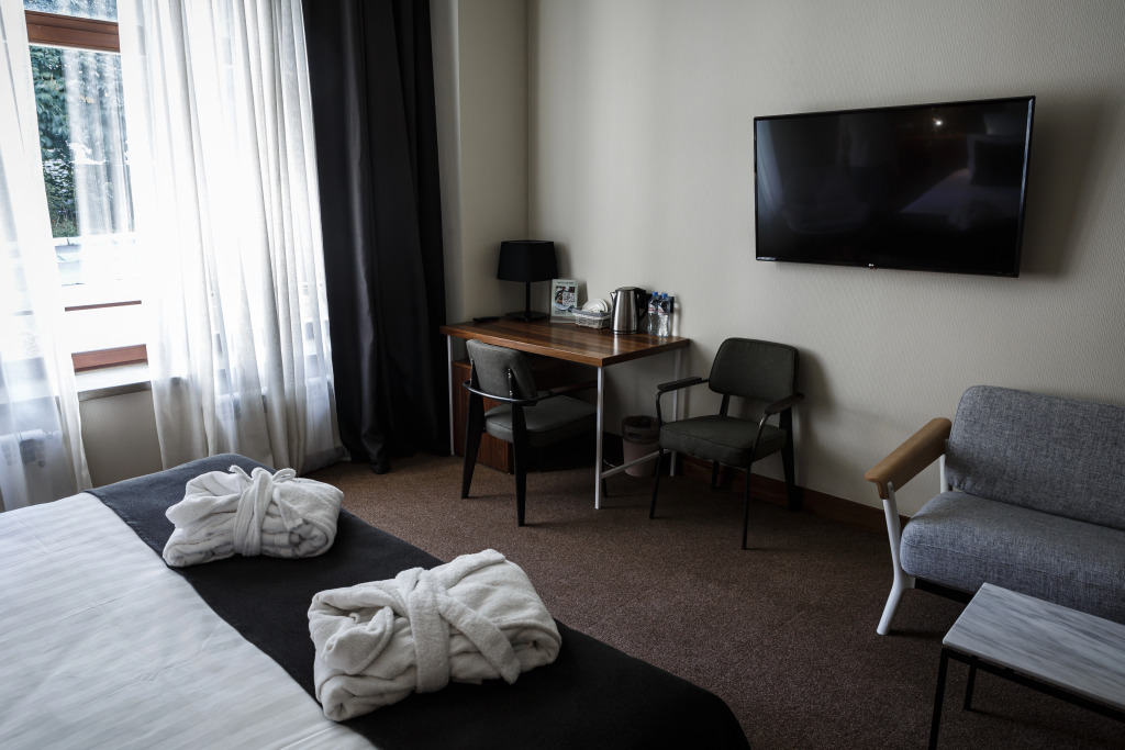 Чтобы вы могли отдохнуть после долгого дня, в номере есть телевизор и халат. Перечисленные услуги есть не во всех номерах.