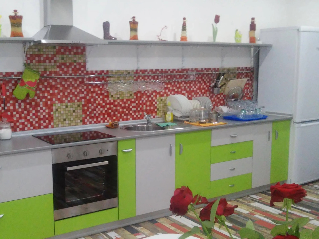 Кухня. Очень удобно, просторно, все продумано. Всему персоналу большое спасибо. Не огорчило, а скорей смутили тапочки на входе. Кто их до меня одевал? Мыли ли их после очередного использования?