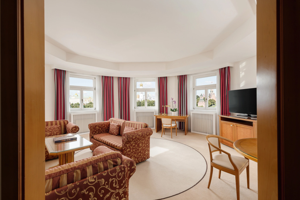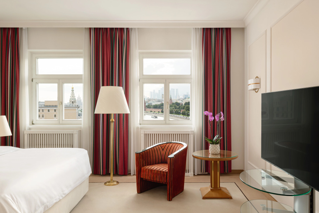 В каждом номере есть телевизор с большим экраном, бесплатная вода ежедневно, мини-бар, халат и тапочки. Из номеров открывается вид на Кремль, Красную площадь, Храм Василия Блаженного и Парк Зарядье.