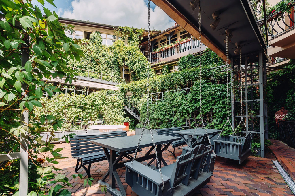 В отеле есть ресторан грузинской кухни «Тифлисский дворик», в залах которого проводятся банкеты и другие торжества. Также для гостей работает оздоровительный центр с бассейном и сауной. На территории отеля есть бесплатный Wi-Fi Интернет. Сотрудники отеля окажут гостям помощь в организации экскурсионных услуг, а также для гостей предлагаются транспортные услуги.