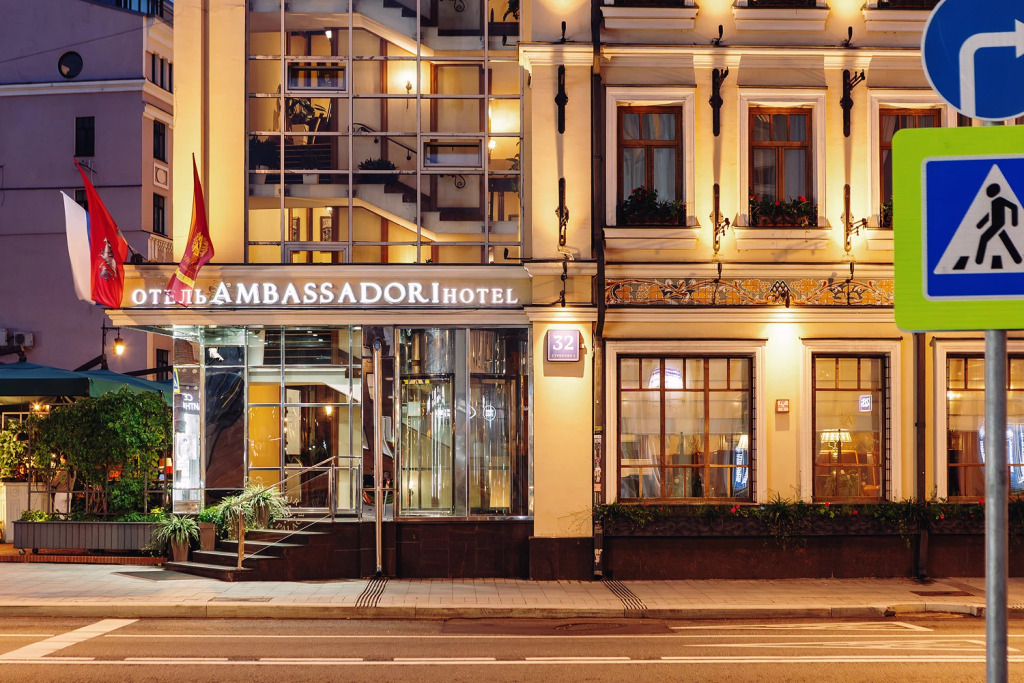 Отель «Амбассадори» — это современный бутик-отель, расположенный в историческом районе Москвы, в пределах Садового кольца и в нескольких километрах от Кремля, Красной площади и Большого театра. Также отель находится в пешей доступности от Храма Христа Спасителя, в престижном районе Хамовники, который славится ресторанами и кафе, галереями искусств, антикварными салонами, модными магазинами.