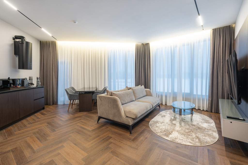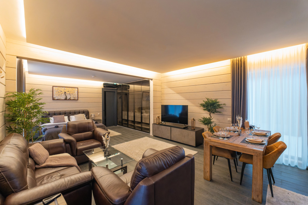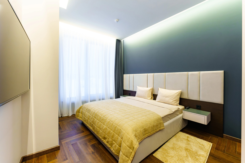 Номер уютно обставлен и оснащён необходимым, чтобы отдохнуть после долгого и насыщенного дня. Имеются телевизор. Оснащение зависит от выбранной категории номера.