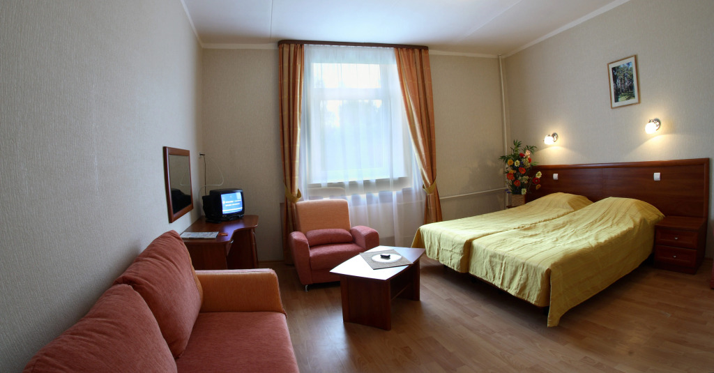 Если вы ностальгируете по советскому союзу то вам сюда! Номера маленькие,полы все от старости выцветшие и потертые,ручка у двери ведущей на балкон отваливается,душевая-ржавая и старая,краны все в налёте,двери не закрываются,шкафы поломанные,туалет во время смыва рычит так,что кажется все соседние номера аж трясутся,кровати 2 раздельные и если их сдвинуть между ними образуется щель размером с кулак. Чтоб попасть в столовую с колясками(если вы с детьми)или на инвалидной коляске то нужно тащить на 2 этаж(большой лестничный пролёт) про пандусы тут похоже даже не слышали. Да и вообще с детьми тут делать нечего,игровая комната не работает,площадка детская не функционирует. В общем совок в чистом виде. Единственный плюс это красивая территория и столовая. Жаль что такую территорию забросили и не приводят в порядок,фонари покрашены лет 20 назад. В общем не советую это место для отдыха,тут разве что старикам будет нормально,да и то не факт.