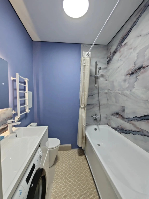 В кухне имеется микроволновая печь, чайник, холодильник, посудомоечная машина, водонагреватель. В ванной комнате фен, шампунь, гель, зубные щётки, зубная паста.