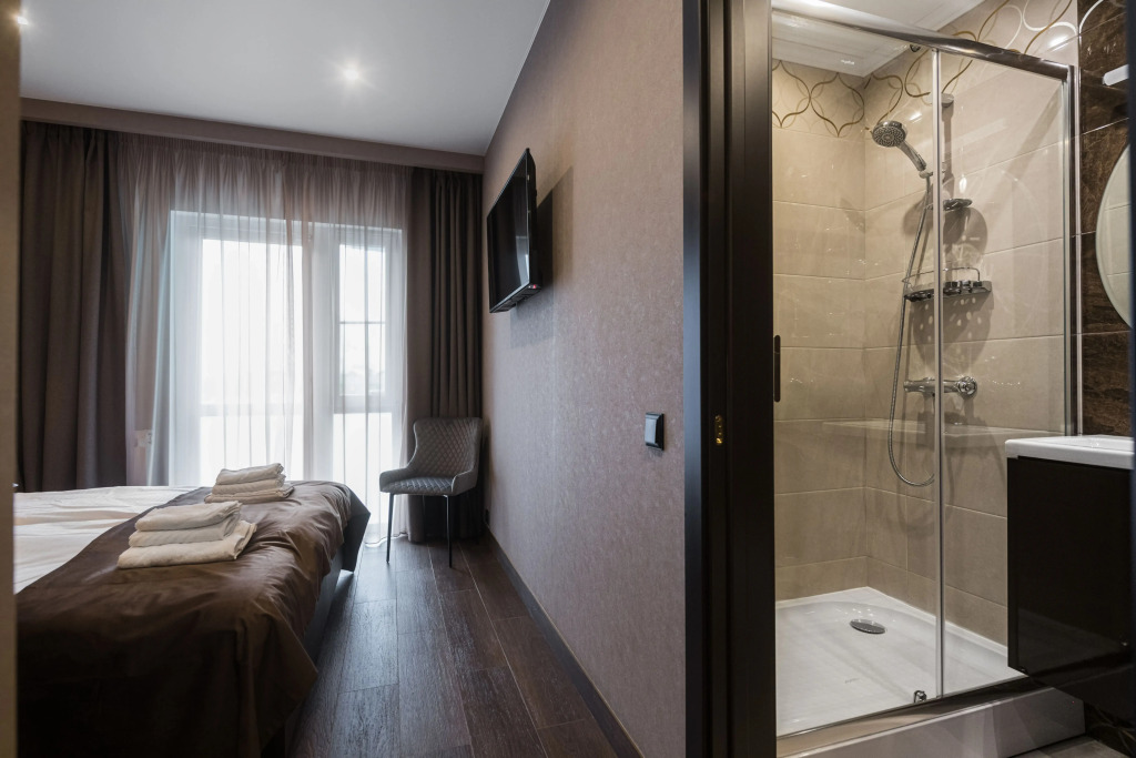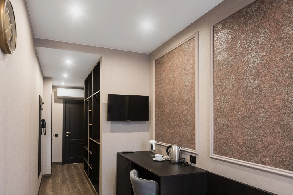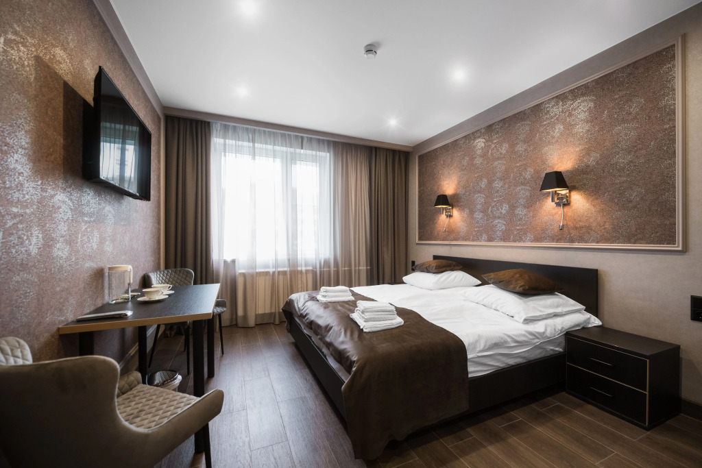 Номер уютно обставлен и оснащён необходимым, чтобы отдохнуть после долгого и насыщенного дня. Имеются телевизор и халат. Перечисленные услуги есть не во всех номерах.