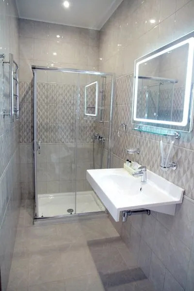 Сняли двухместный Стандарт. В номере сейф, холодильник, чайник, чай Гринфилд на выбор, кофе 3 в 1 (у ресепшена видела кофемашину вроде, но не пользовалась). Водичка в бутылках Шишкин лес. Огромная двуспальная кровать! Матрас идеальный (моя вечно ноющая спина подтверждает!). Окна выходят во двор, прямого солнца нет, в номере прохладно. Чистота идеальная, санузел блестит, никакого запаха, душевая или новая или ее намывают до скрипа каждый день. Вода горячая, не приходилось ни разу ждать пока нагреется. Полотенца меняют каждый день (их кстати три, для рук для ног и для всего остального=)). Постельное раз в три дня, но при необходимости можно попросить поменять и раньше. Зубные наборчики, мыло, шампунь и гель для душа предоставили, тапочки тоже. Есть фен. Wi Fi работал исправно даже вечером, когда собирались все постояльцы. В общем, идеально! Огромное спасибо всем сотрудникам за комфорт! Если будем проезжать в тех краях- обязательно к вам)