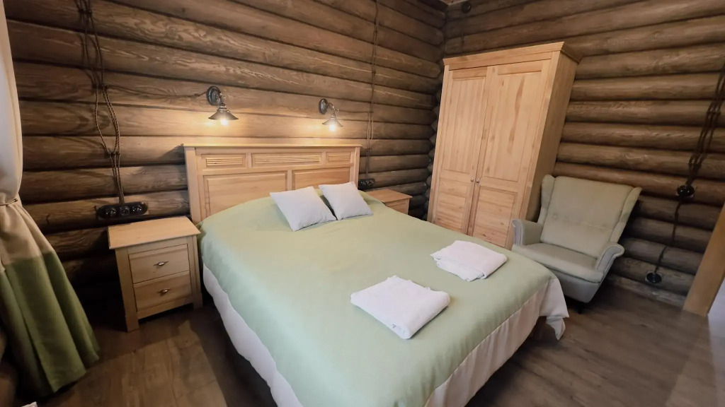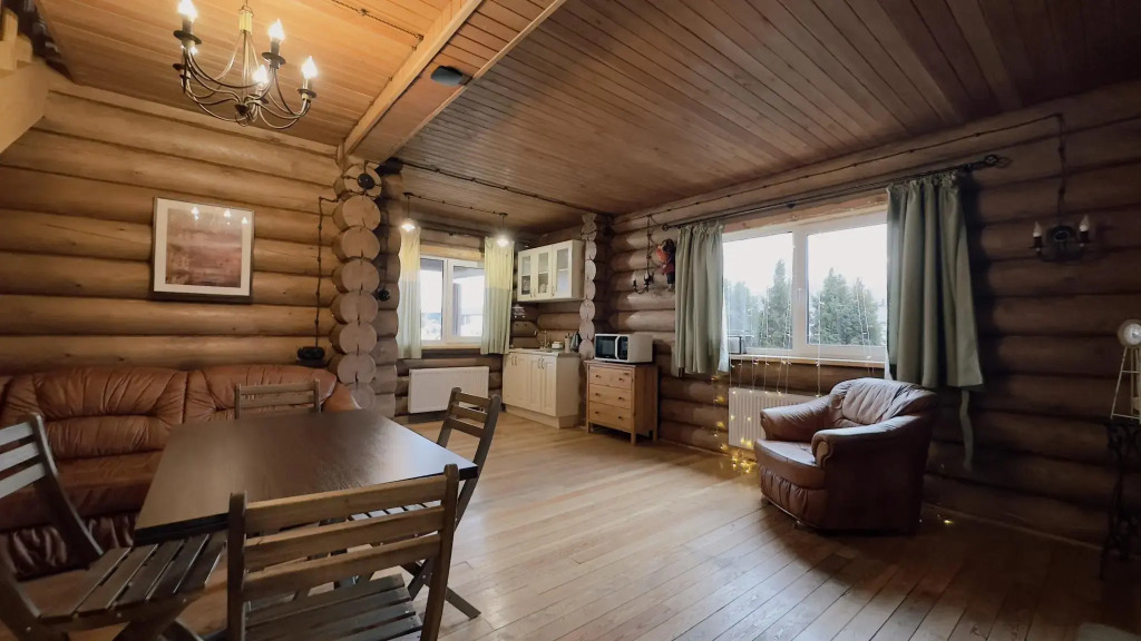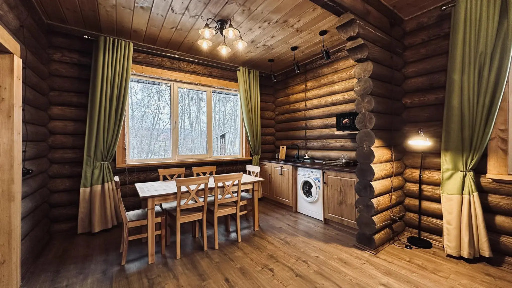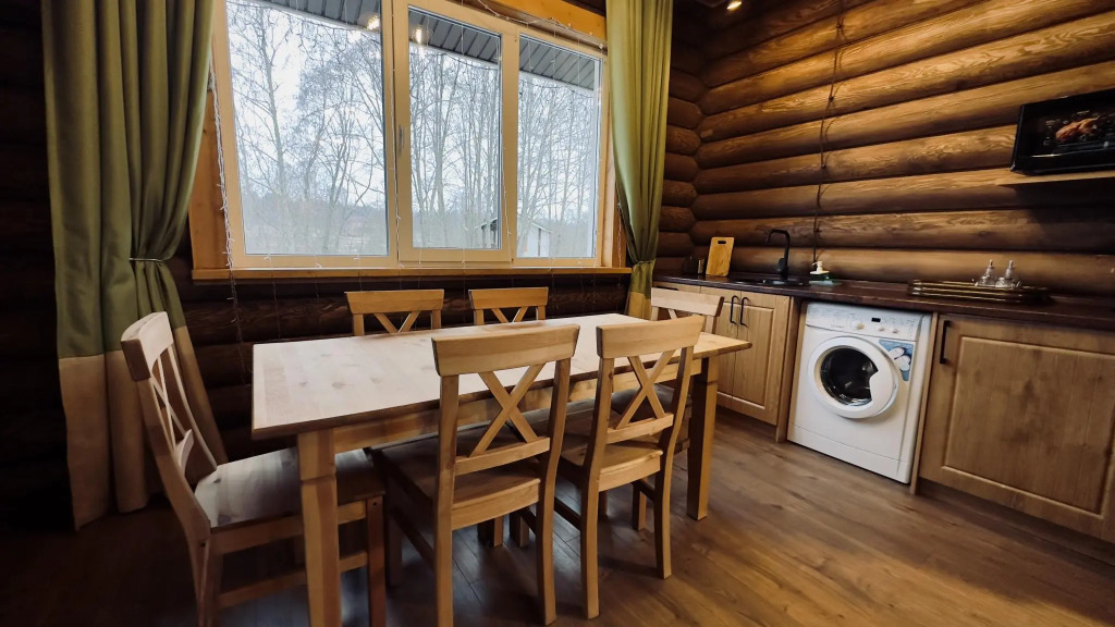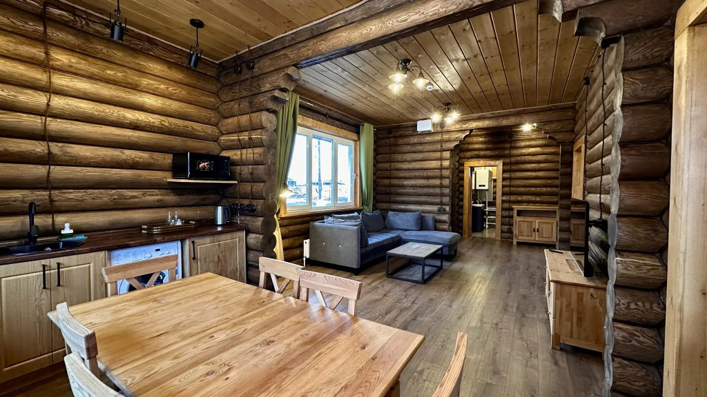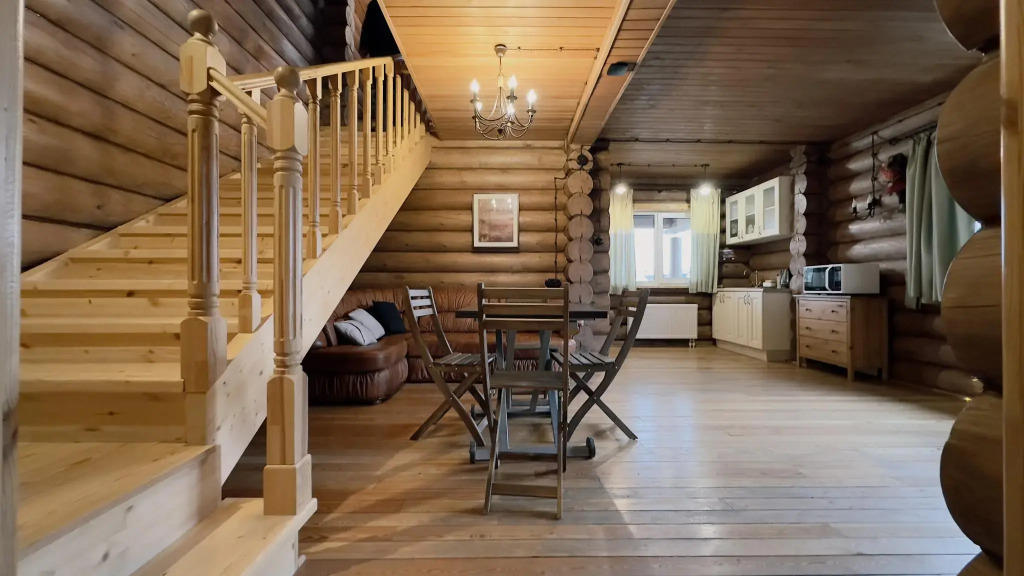 В домах, построенных из экологически чистых материалов, преимущественно это натуральное дерево есть: отопление, кондиционеры, горячая вода, холодильники, кухни с набором посуды для приготовления пищи, камины.