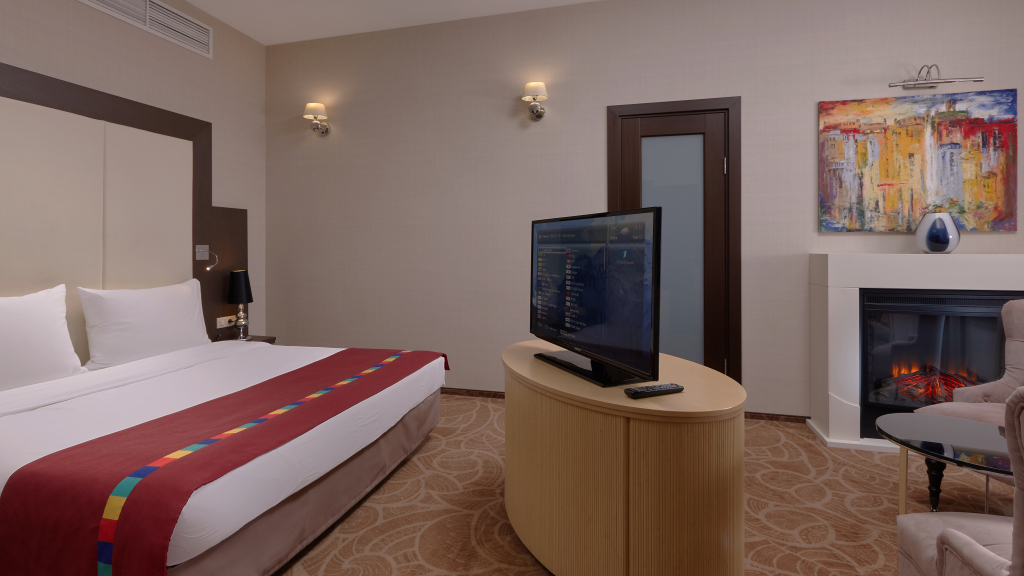 В номере гости найдут телевизор, мини-бар и халат. Перечисленные услуги есть не во всех номерах.