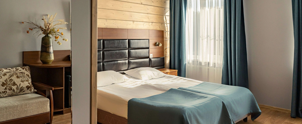 Комфорт Отель Пересвет находится в самом сердце курорта: в нём расположен главный ресепшн и Музей ретро-автомобилей. Номерной фонд 4 звезды, а вид из окон выходит на большой футбольный стадион и центральную площадь курорта, где находится музыкальная карусель и фонтан. Инфраструктура курорта едина и доступна для пользования всем гостям.