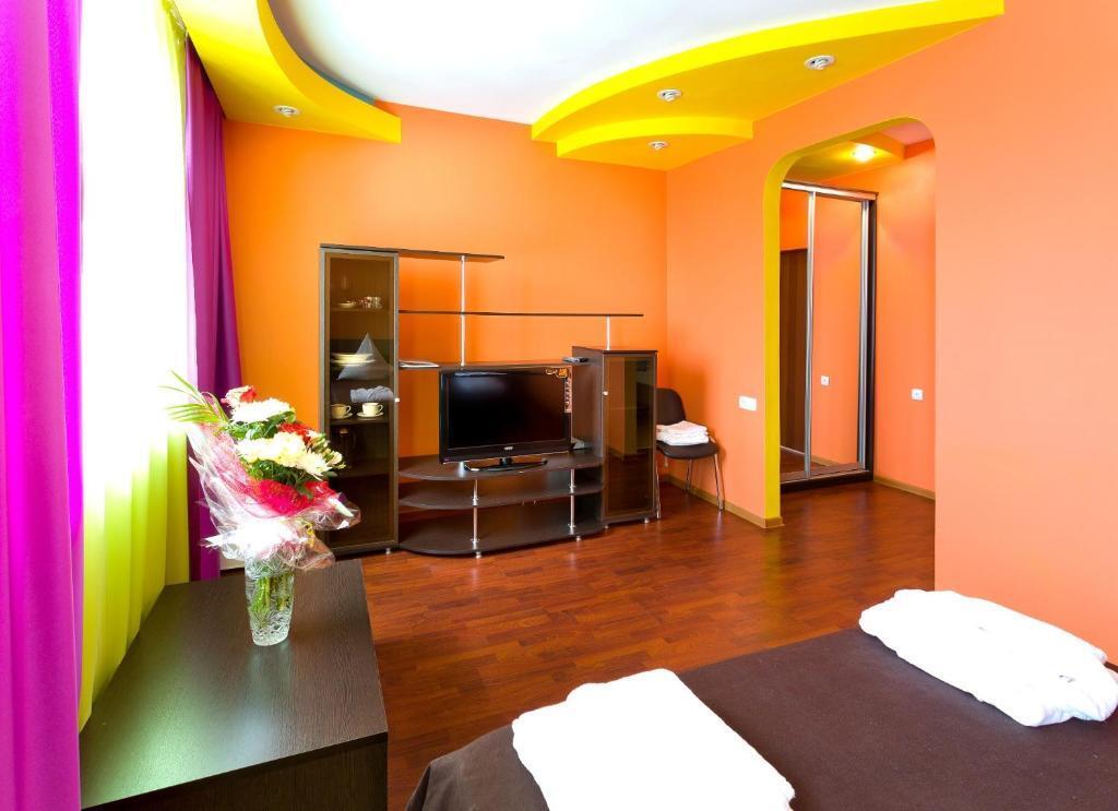В номере гостей ждут телевизор, мини-бар и тапочки. Перечисленные услуги есть не во всех номерах.