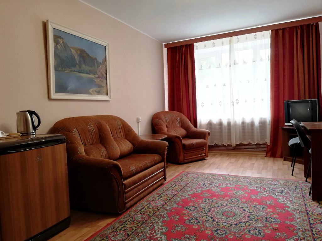 В номере вас будут ждать телевизор. Оснащение зависит от выбранной категории номера.