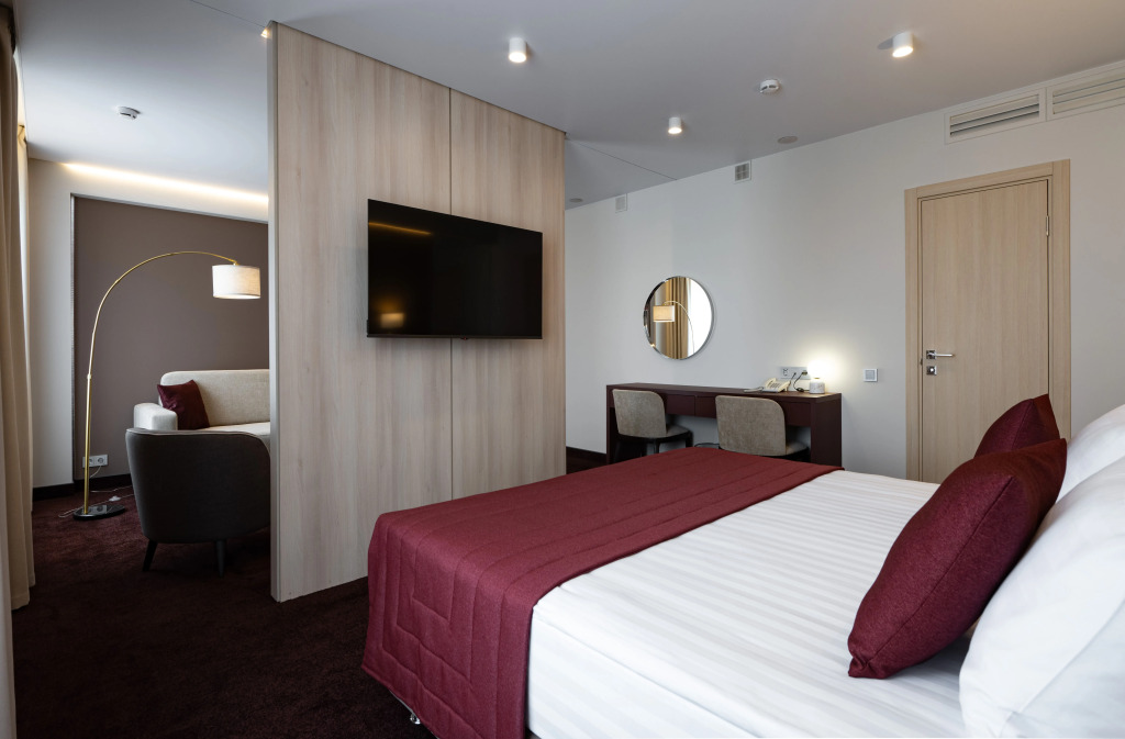 В номере вас будут ждать телевизор. Оснащение зависит от выбранной категории номера.