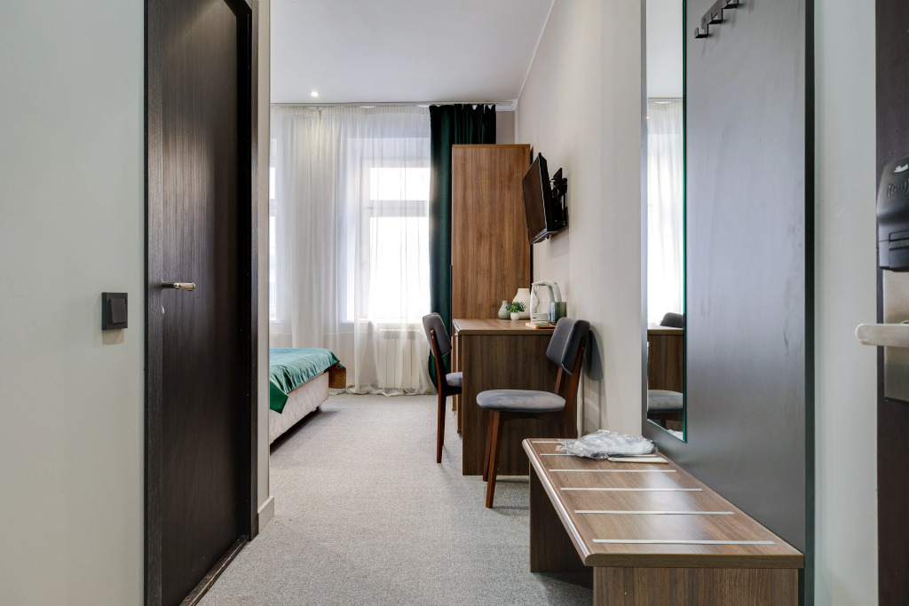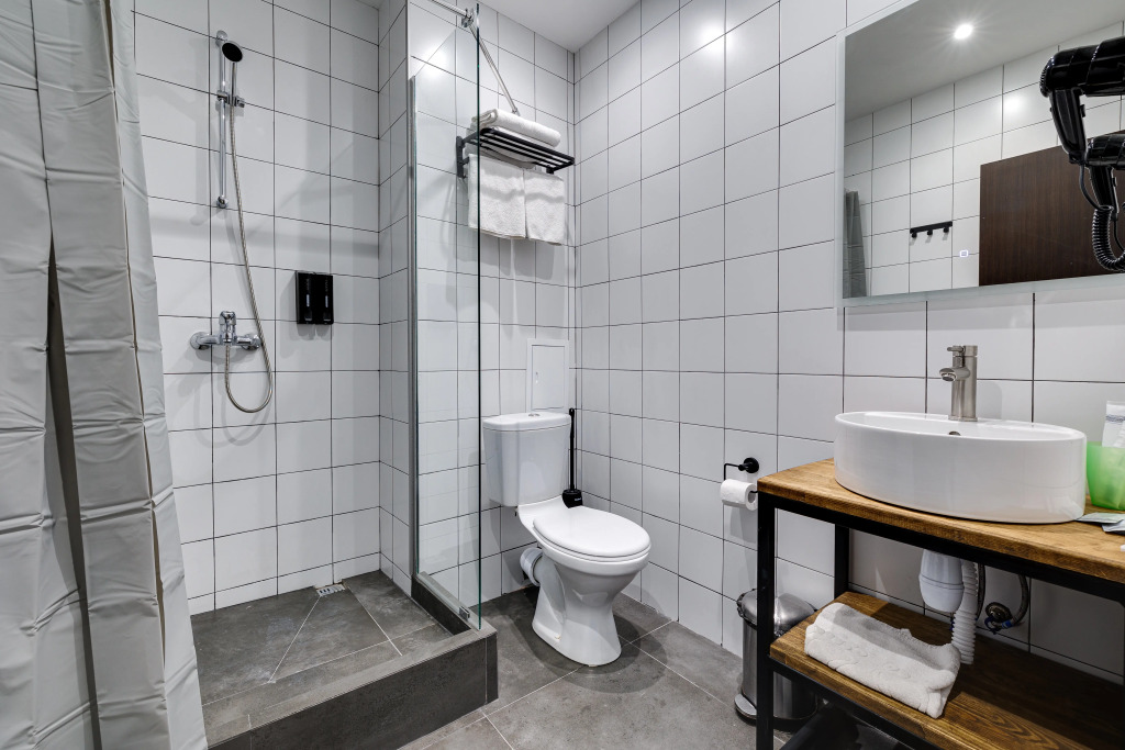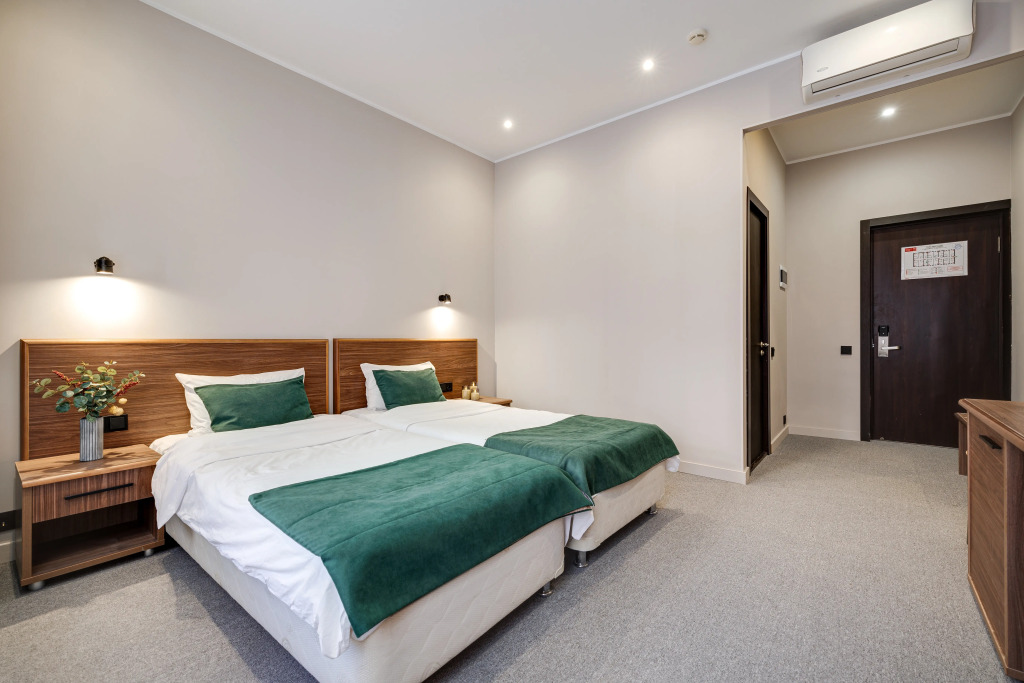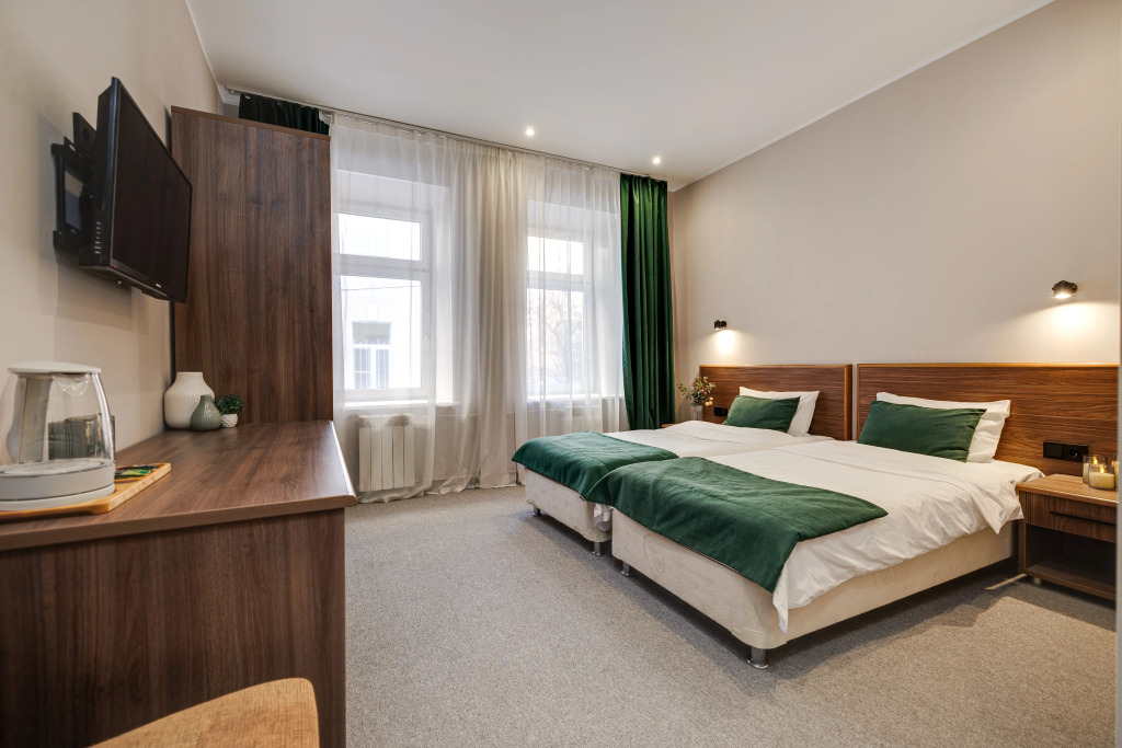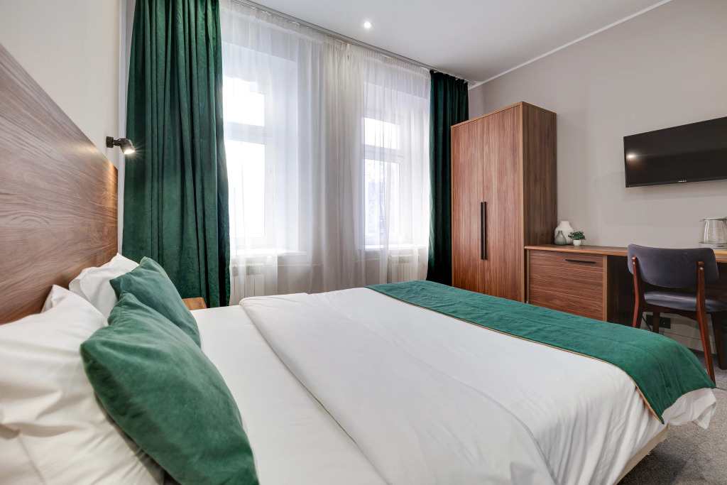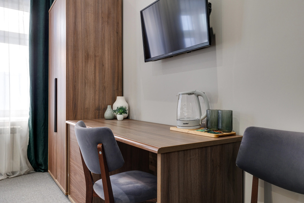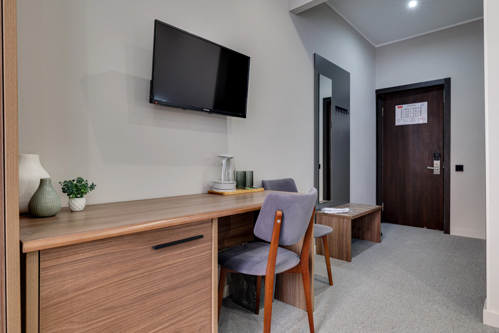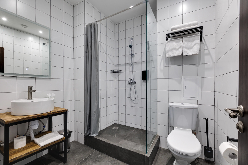 В номере есть душ, телевизор, халат и тапочки. Оснащение зависит от выбранной категории номера.