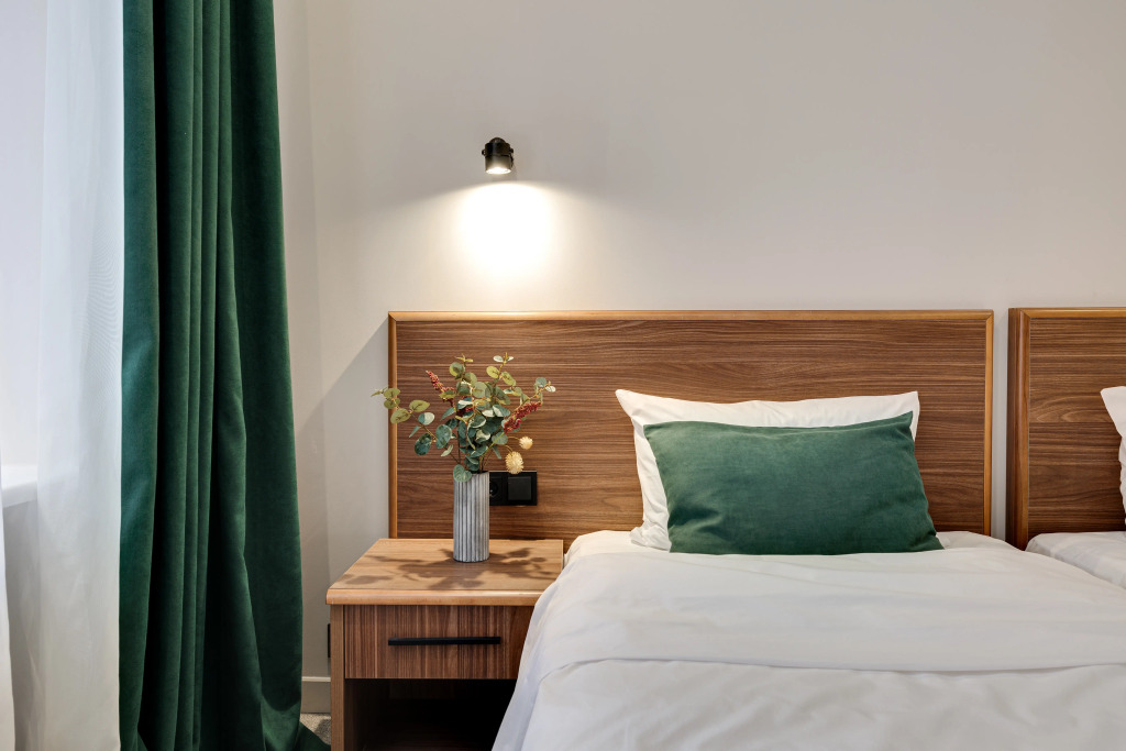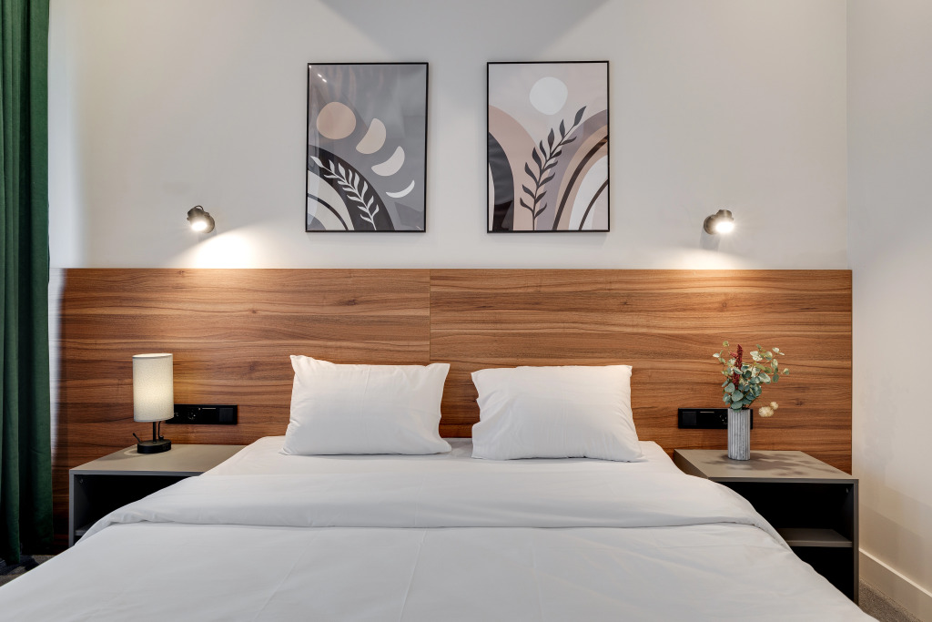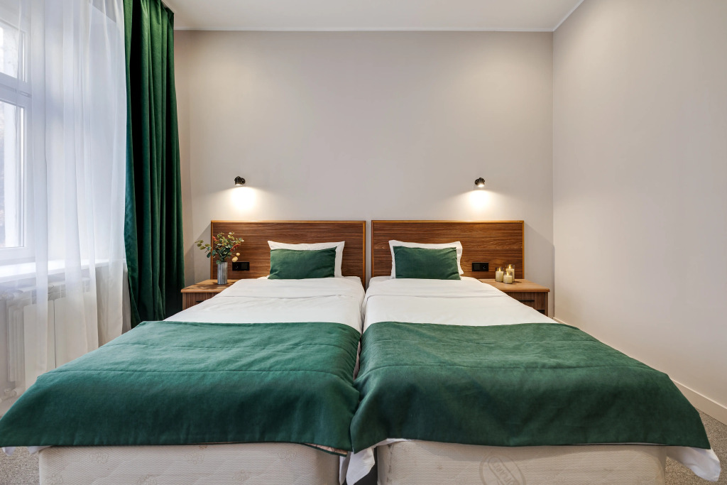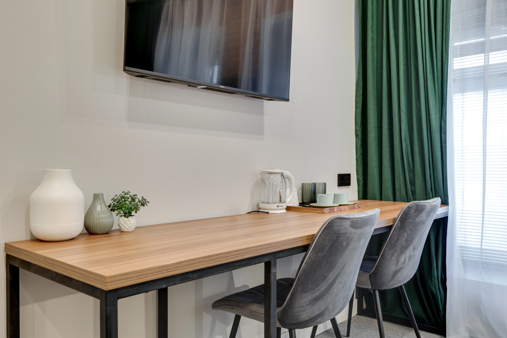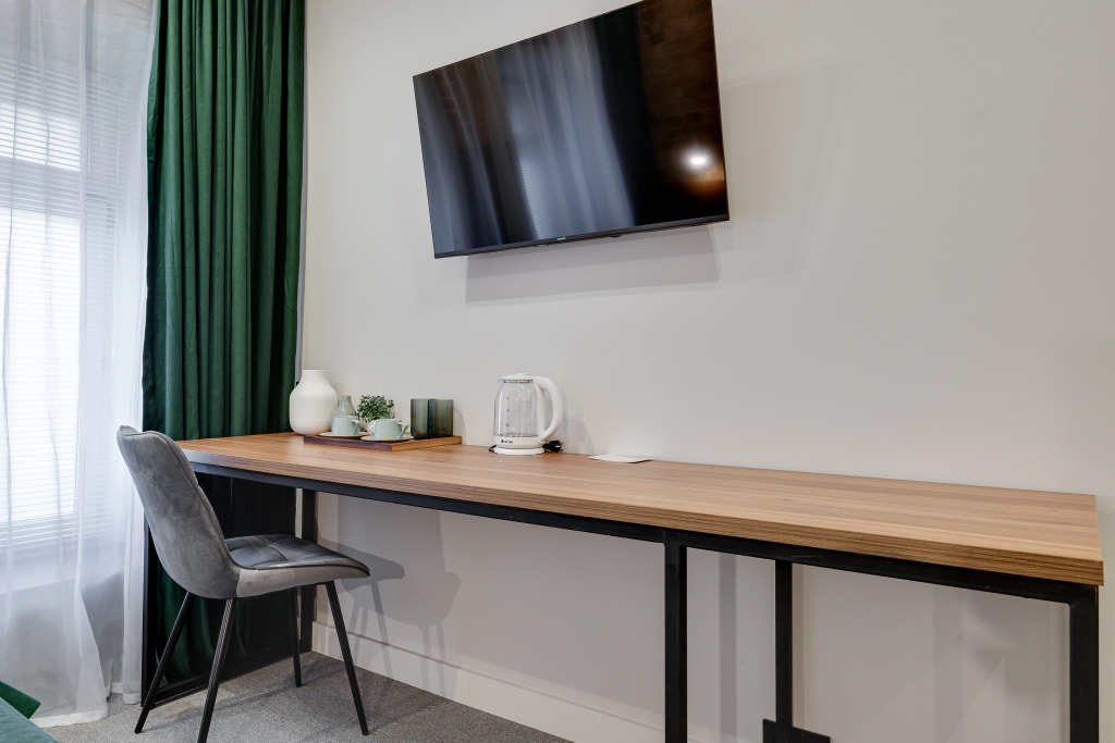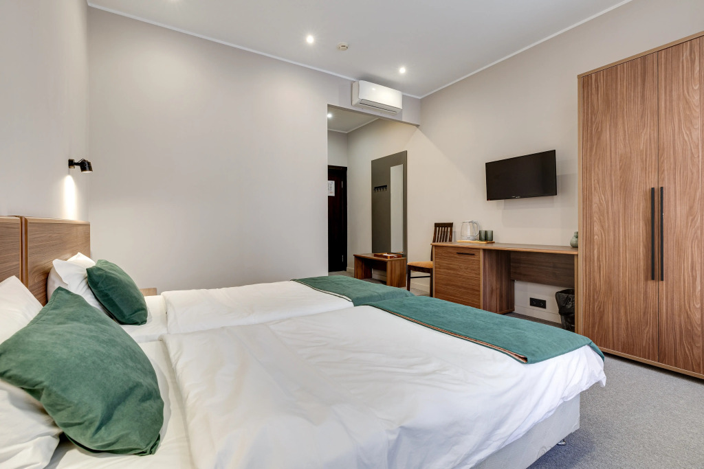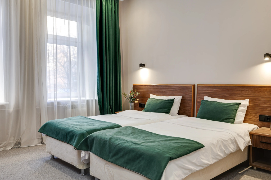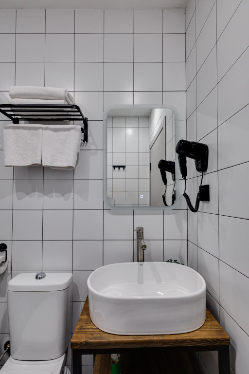 В номере есть душ, телевизор, халат и тапочки. Оснащение зависит от выбранной категории номера.