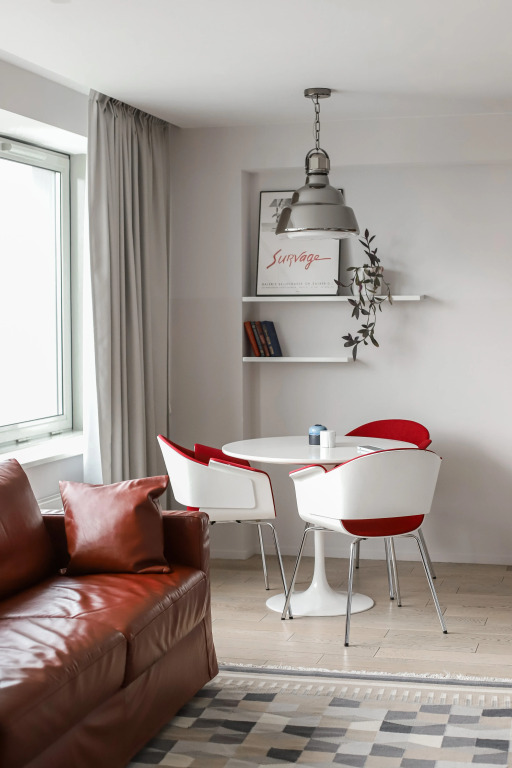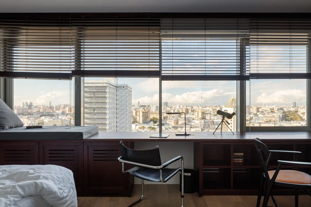 Для поддержания спортивной формы предлагается коврик для йоги, гантели и финтес-резинки. Для маленьких гостей предоставляются детские кроватки, стульчики для кормления, посуду, игрушки. В интерьерах апартаментов размещается большое количество винтажных предметов мебели, освещения и декора, комнаты украшают работы современных московских художников. Гости также могут понаблюдать за городскими видами прямо из окон — в нескольких категориях апартаментов есть подзорные трубы.