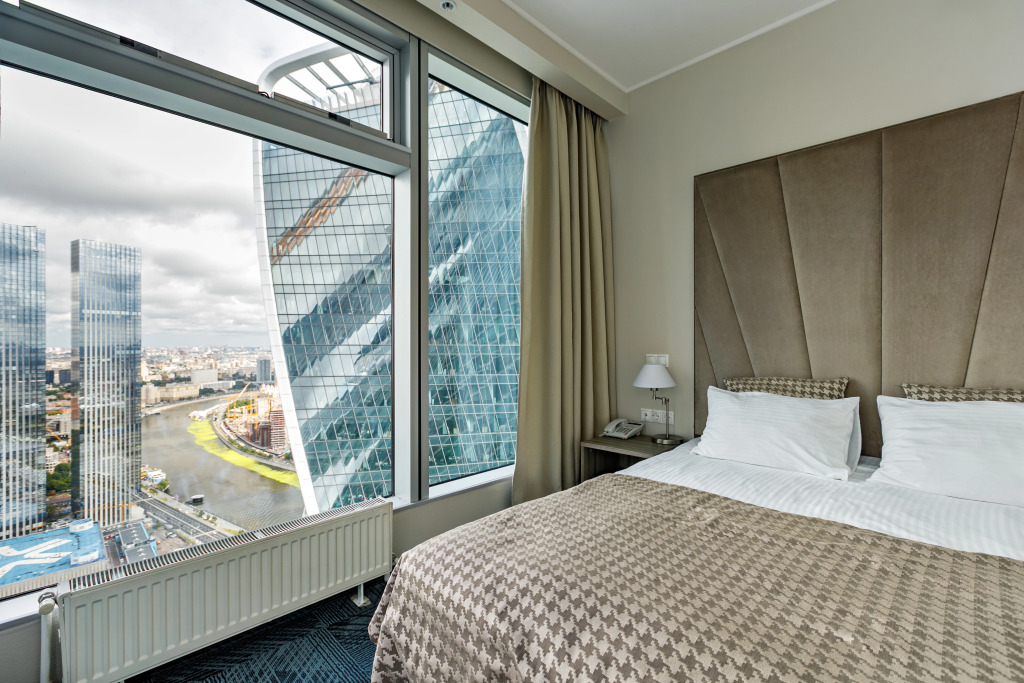 Гостям необходимо сначала пройти на стойку регистрации здания на 1 этаже для оформления пропуска, и потом подняться на стойку регистрации отеля. Стойка регистрации отеля расположена на 48 этаже