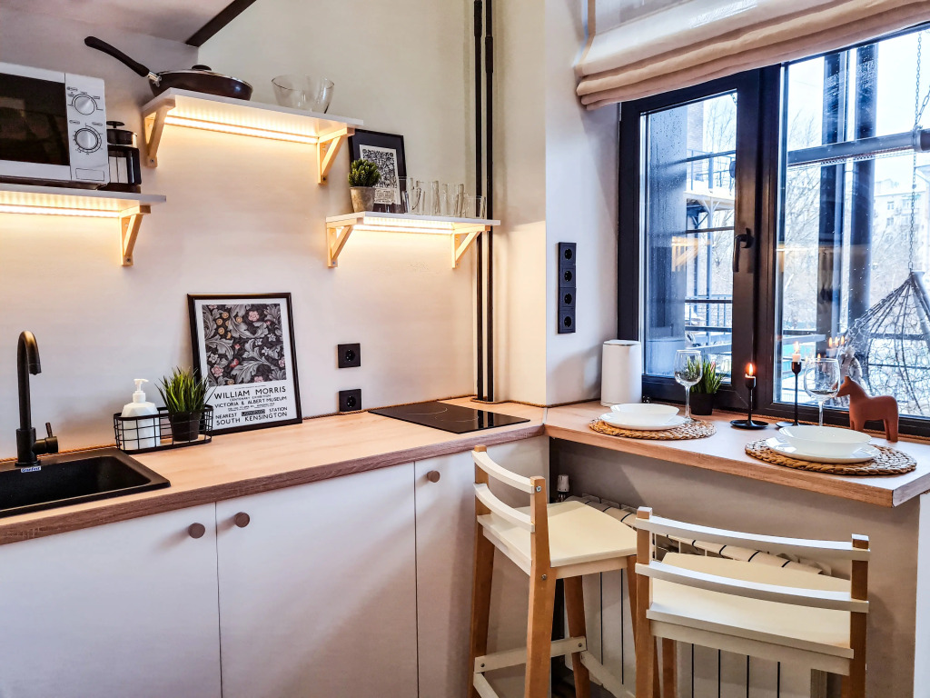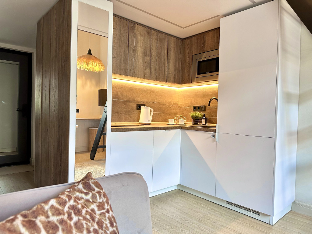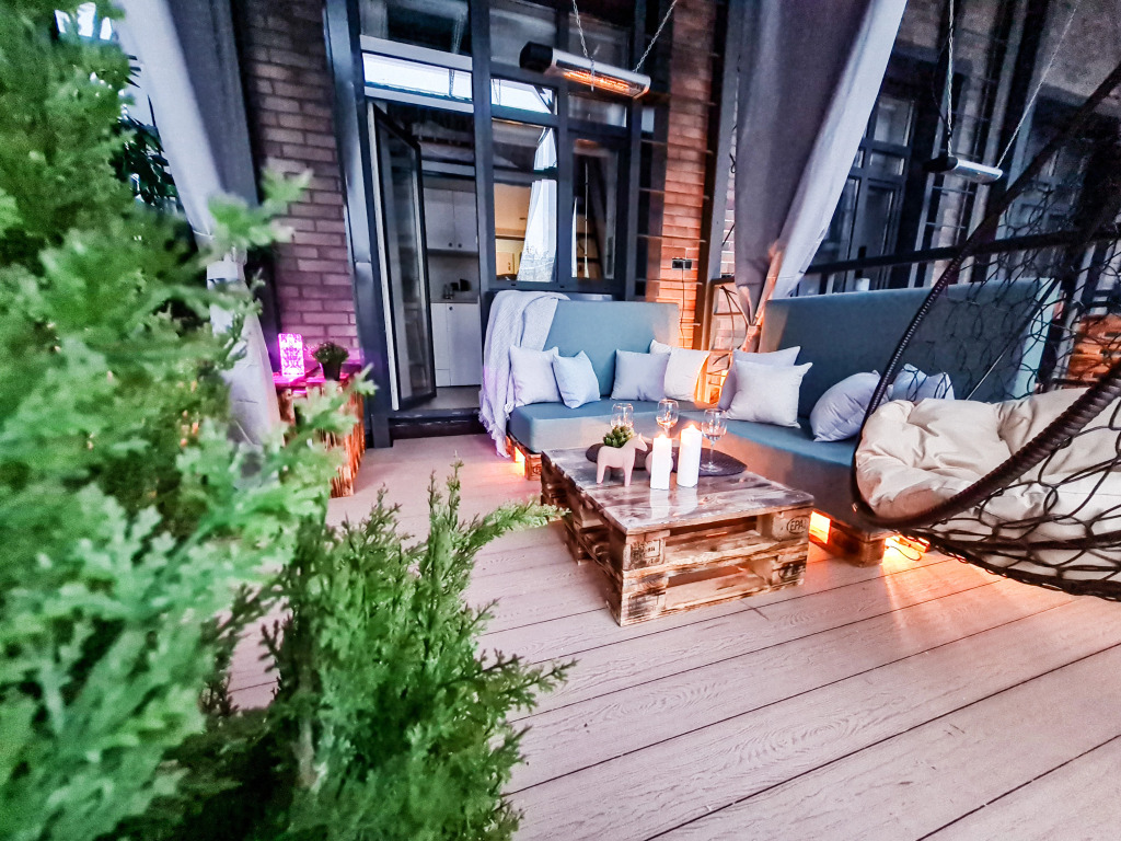 В номере есть телевизор, холодильник, электрический чайник, стиральная машина, электрическая плита, микроволновая печь. В номерах с террасами установлены потолочные инфракрасные обогреватели, что позволяет находиться на свежем воздухе даже в прохладную погоду. Оснащение зависит от выбранной категории номера.