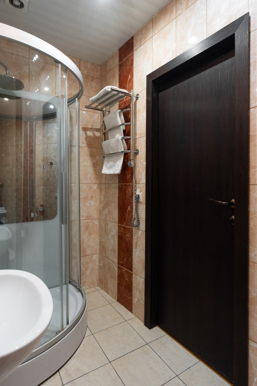 В номере вы найдёте душ, телевизор, халат и тапочки. Оснащение зависит от выбранной категории номера.
