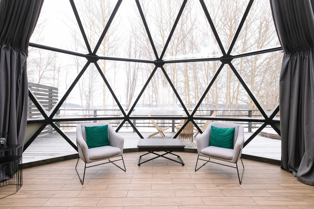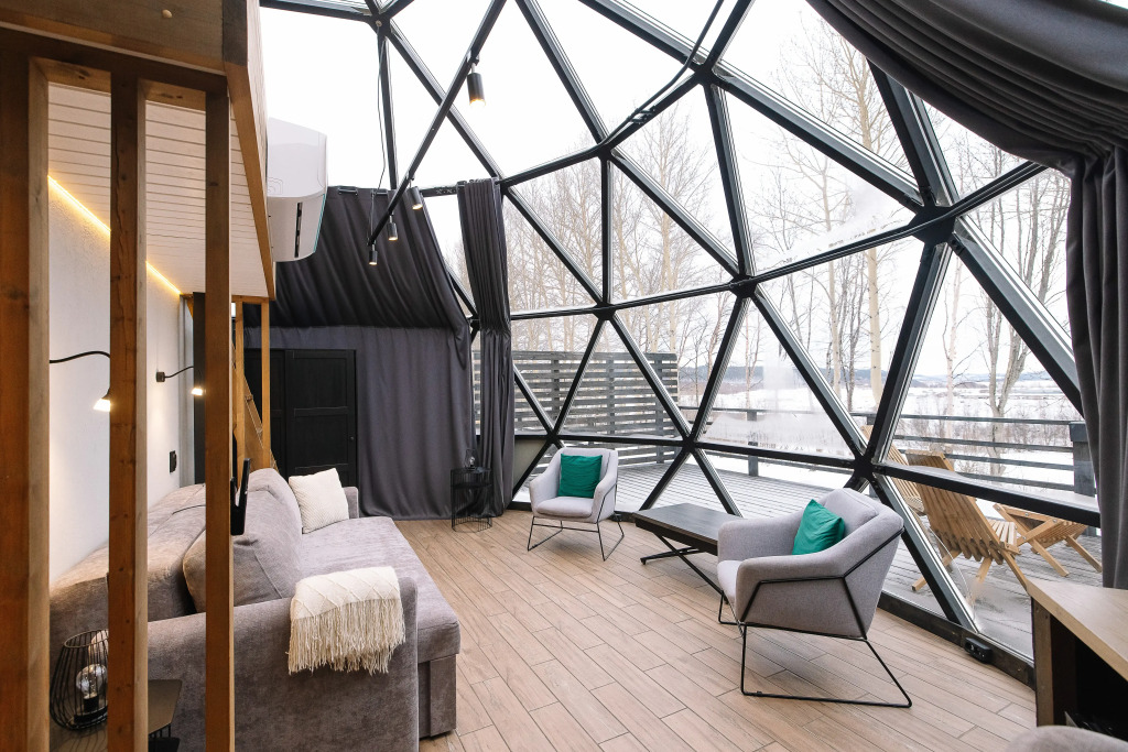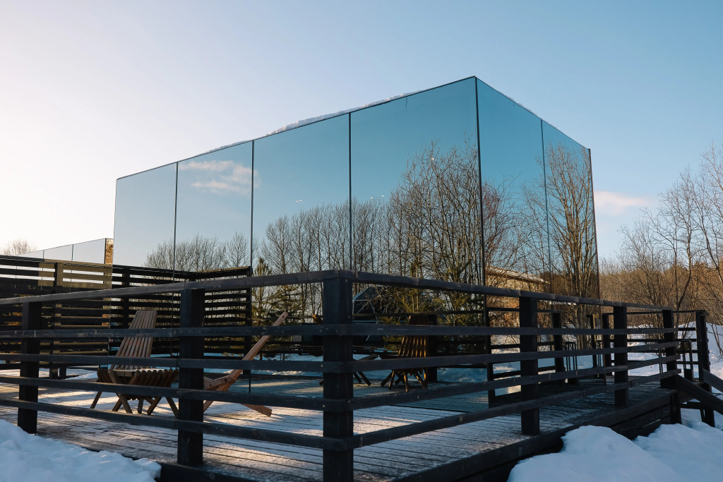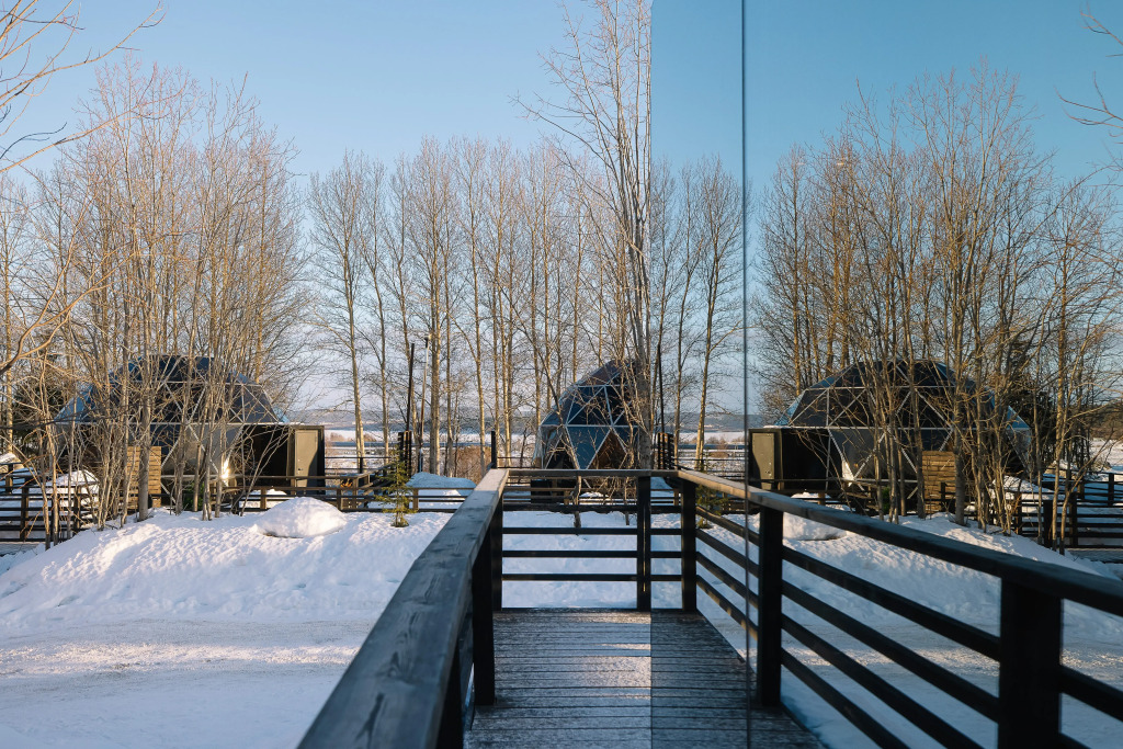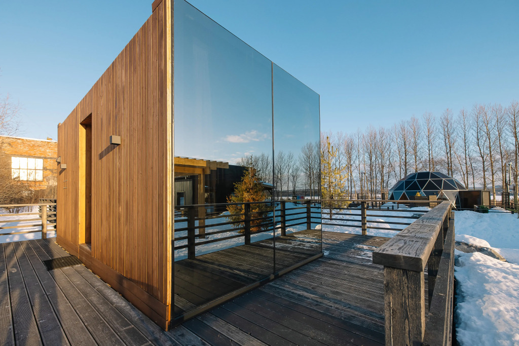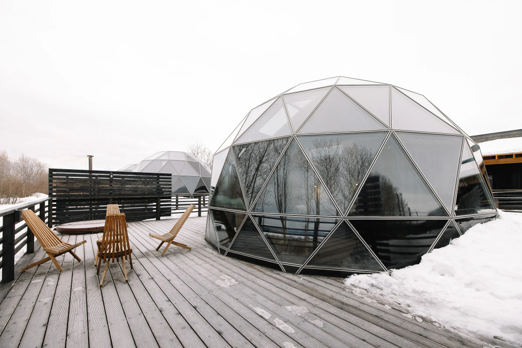 В отеле есть зеркальные и стеклянные дома-сферы.