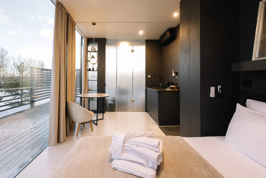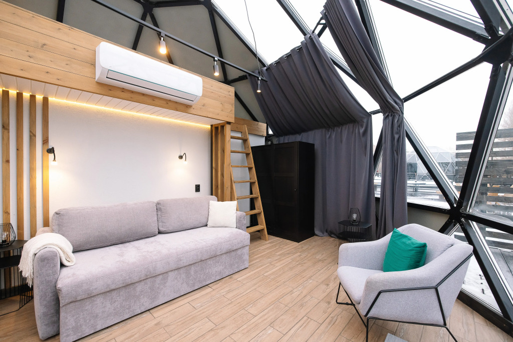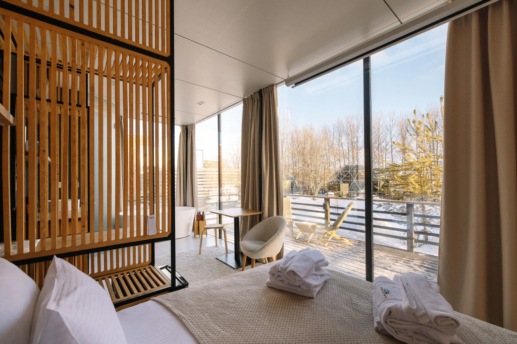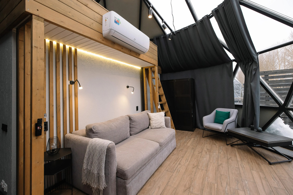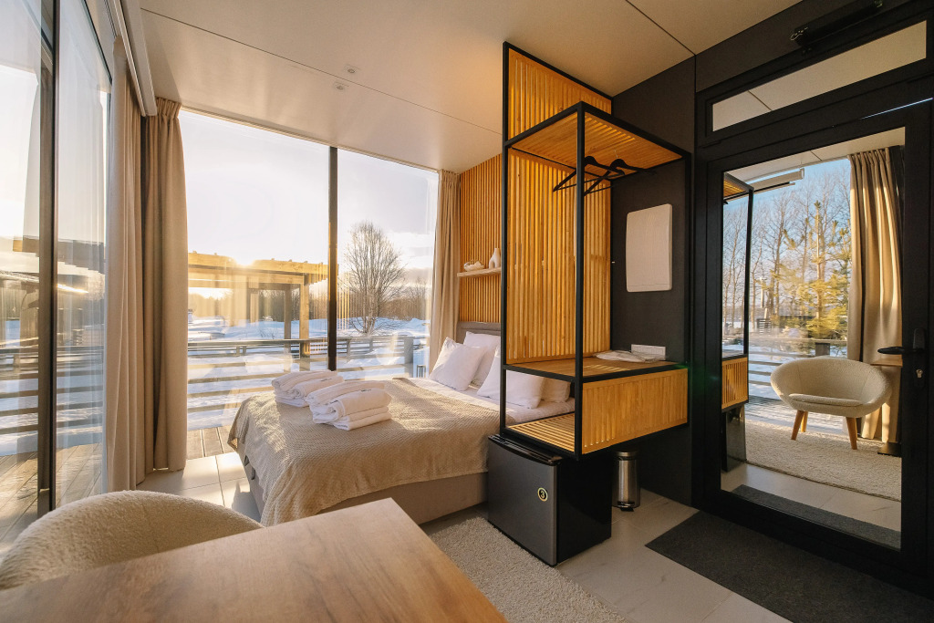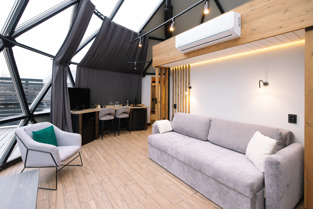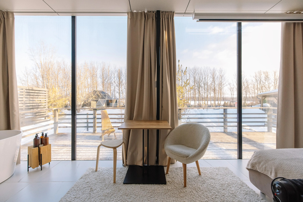В отеле есть зеркальные и стеклянные дома-сферы.