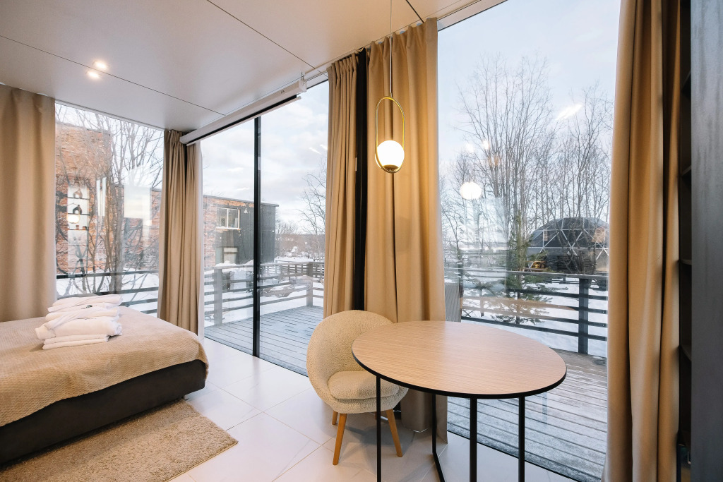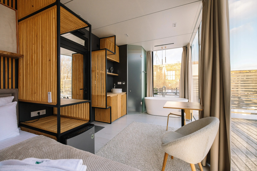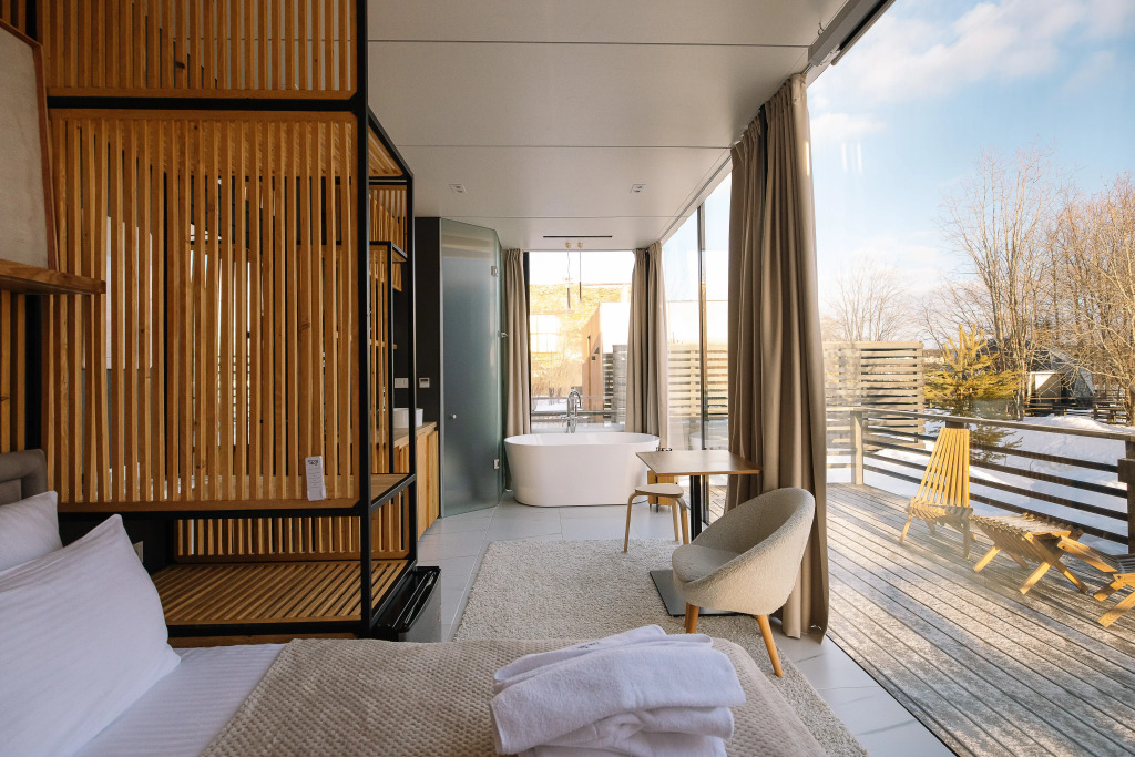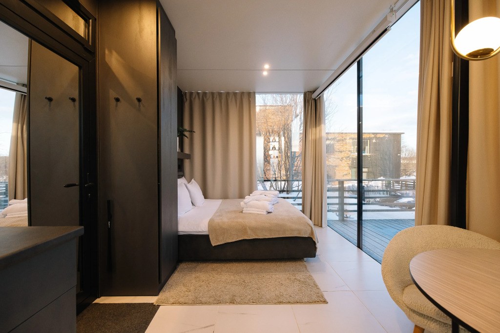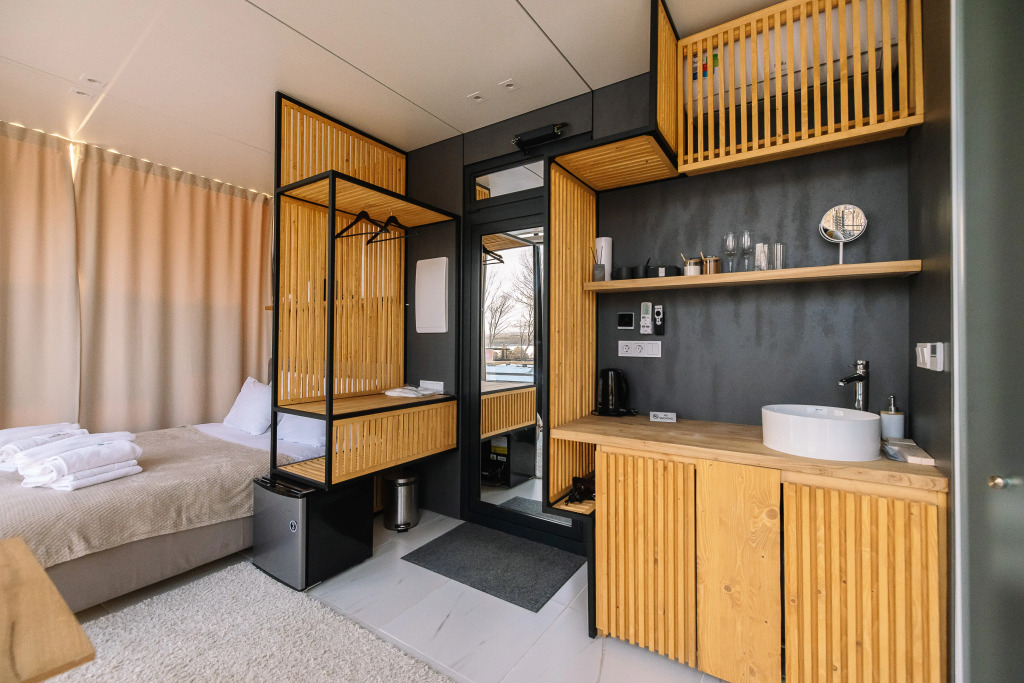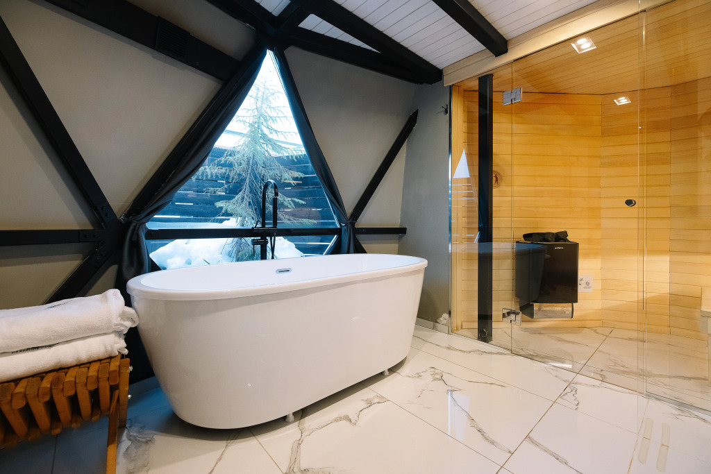В отеле есть зеркальные и стеклянные дома-сферы.
