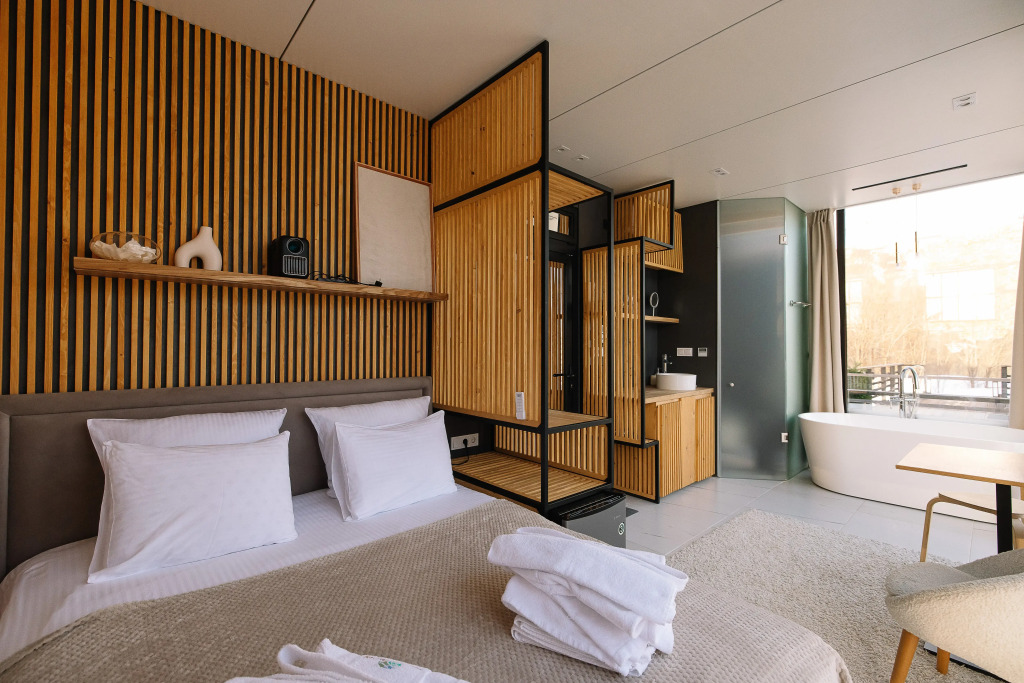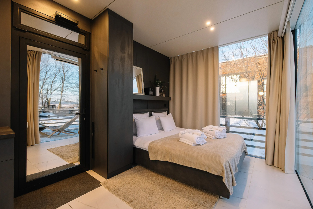 Также гостям доступны: катание на снегоходах, аренда велосипедов, аренда sup-досок, растопка банного чана на террасе, мангальная зона.