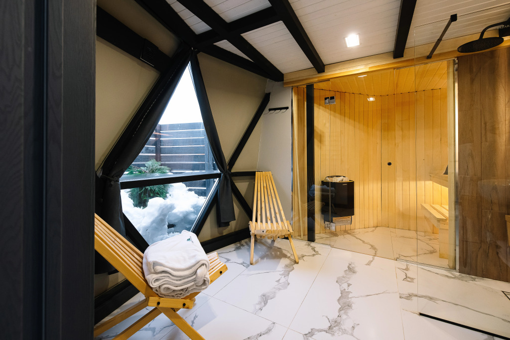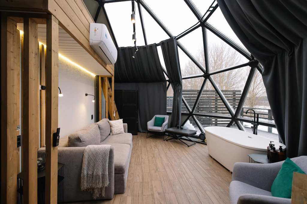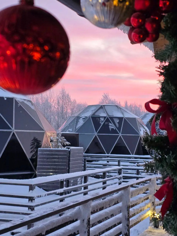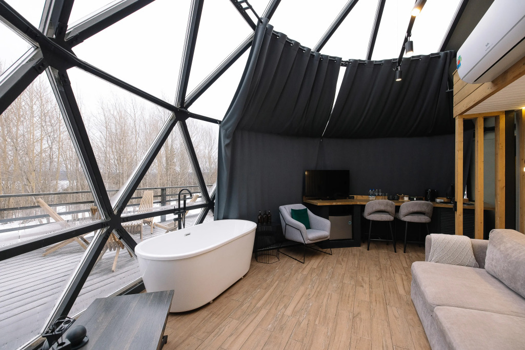 В отеле есть зеркальные и стеклянные дома-сферы.