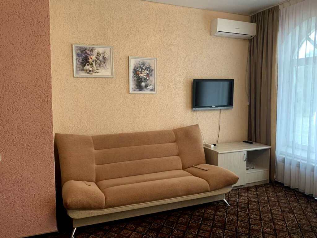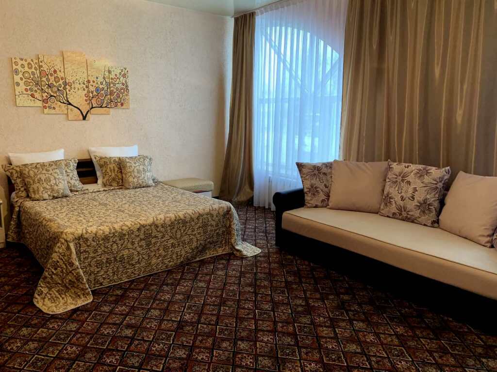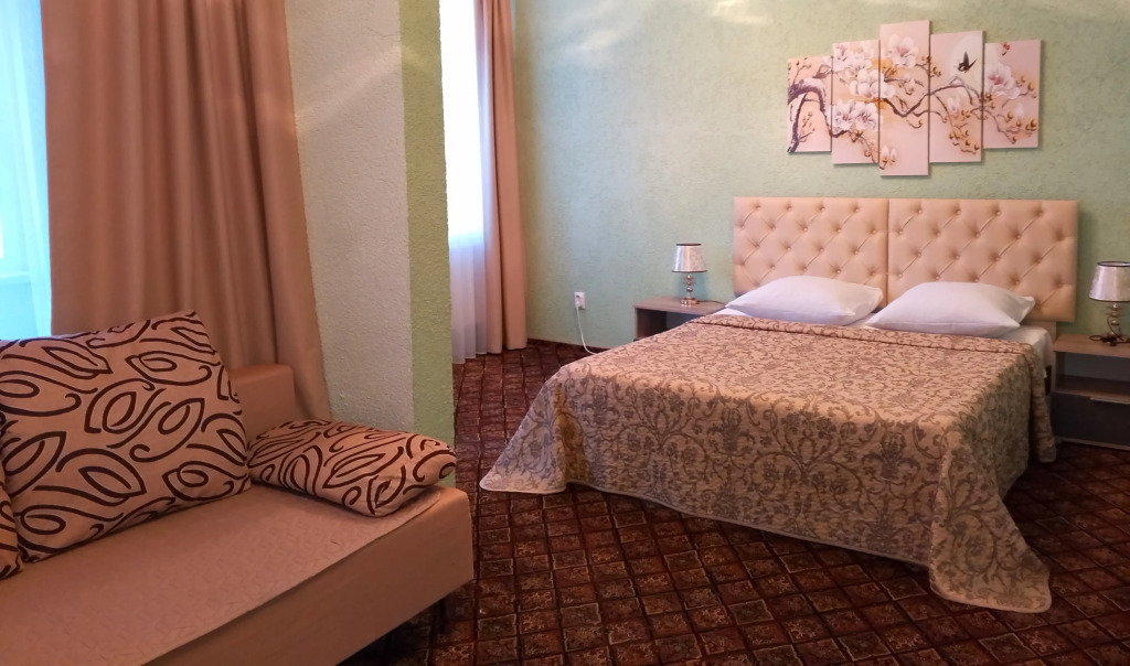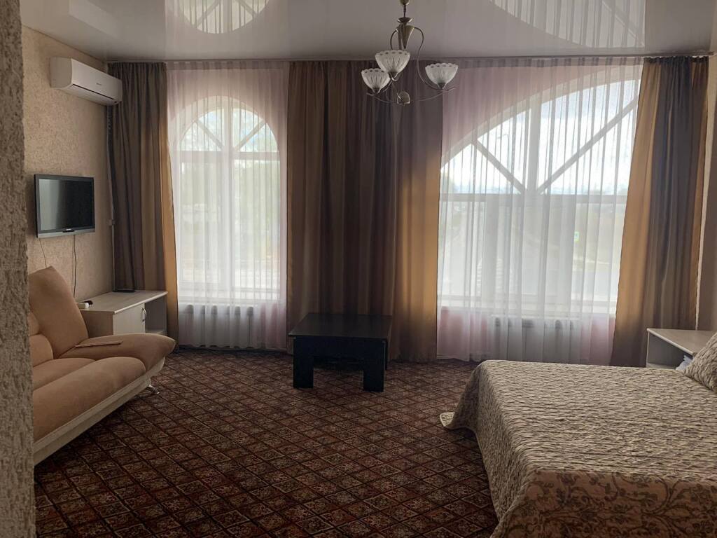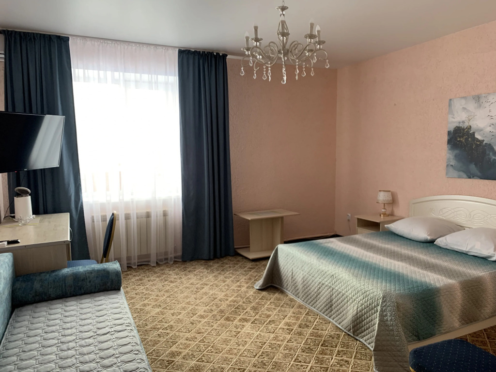 Номер уютно обставлен и оснащён необходимым, чтобы отдохнуть после долгого и насыщенного дня. Имеются телевизор. Оснащение зависит от выбранной категории номера.