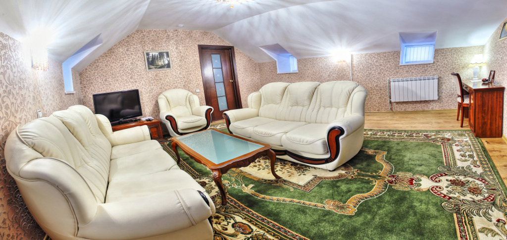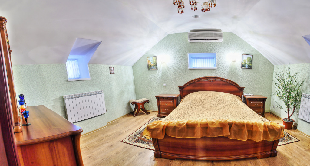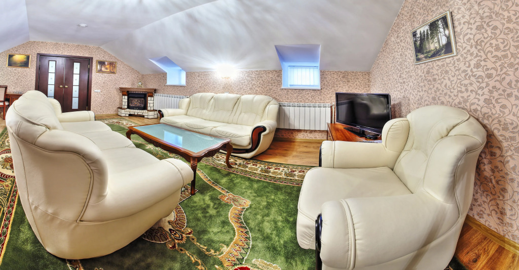 Номер 4 мансарда , небольшие окна, но мы в них и не смотрели...такой номер -вагон)) комната -комната-комната)) проходные. 2 телевизора большие, в спальне прохладно, окно у изголовья кровати выходит на центральный выход. Приличный матрас ))), что порадовало мою спину))) соседей не слышали. Мебель на фото соответствует. Есть конденционер и камин )) камин вообще понравился - работает и греет. В номере чайник , холодильник и пара стаканов. Тарелок итд нет(( Ванная комната - просто мечта ( унитаз, биде и джакузи!!!) всё работает!!! мыльнорыльное наборы и тапки.