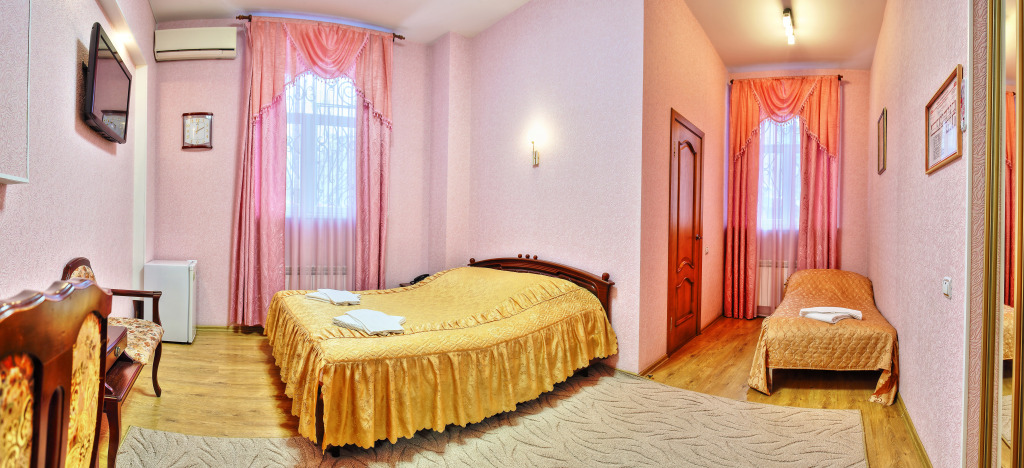 Расположение. Приветливость сотрудников на ресепшен К номеру пройти сложно,коридор был заставлен кроваткой,доской и чем-то еще. Замок работает так себе. Номер старенький,очень маленький-при входе чуть не ударилась о телевизор. Мебель и техника старая и уставшая. Кровать скрипит. Нет большого зеркала,зеркало только в ванной. У окон ночью кто-то устраивал разборки,что,конечно,не особенно порадовало. В целом- для того,чтобы просто переночевать,сойдет. Хотя возможно в этом случае своих денег не совсем стоит
