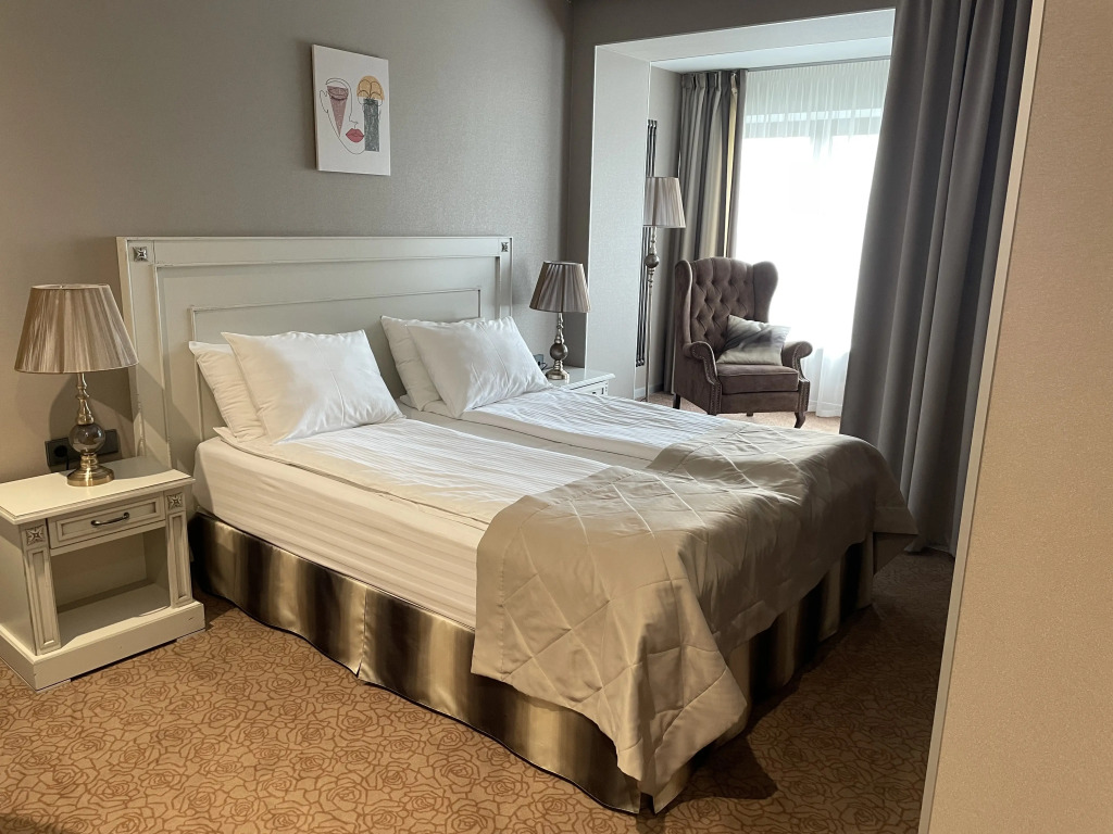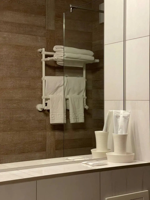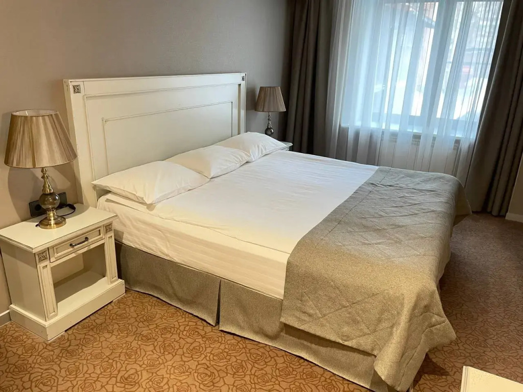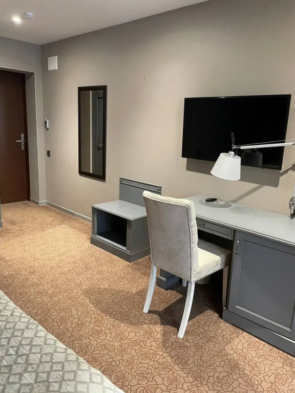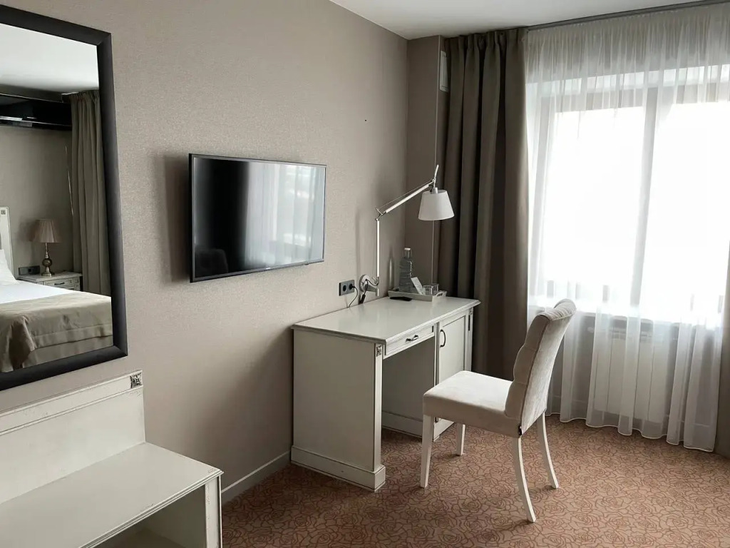 В номере вы найдёте телевизор и халат. Оснащение зависит от выбранной категории номера.