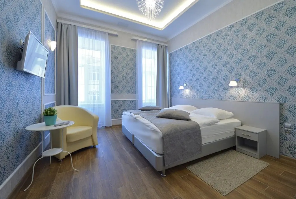 В номере вы найдёте телевизор и халат. Оснащение зависит от выбранной категории номера.