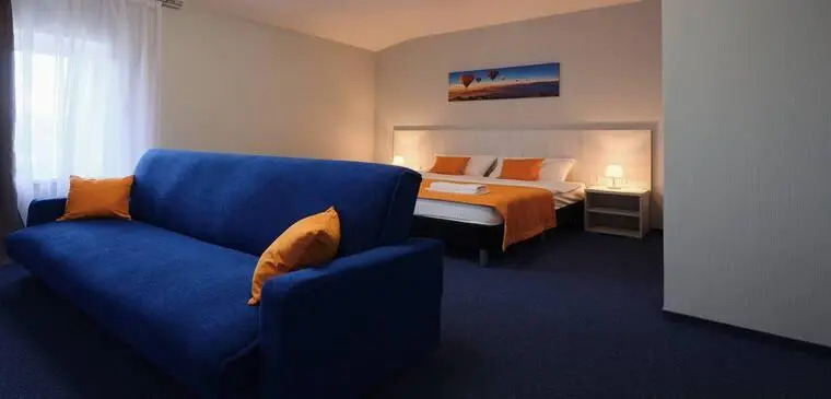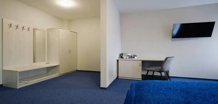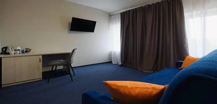 Всё современное, новое, свежее, чистое. Номер семейный великолепный для проживания семьи с 2 детьми: огромная кровать, широкий хороший диван за перегородкой в прихожей, как будто в другой комнате.Белье новое. В номере чайник, чашки, кофе, чай, холодильник, зубные щётки, тапки, губка для чистки обуви - ни в чем недостатка не испытали.