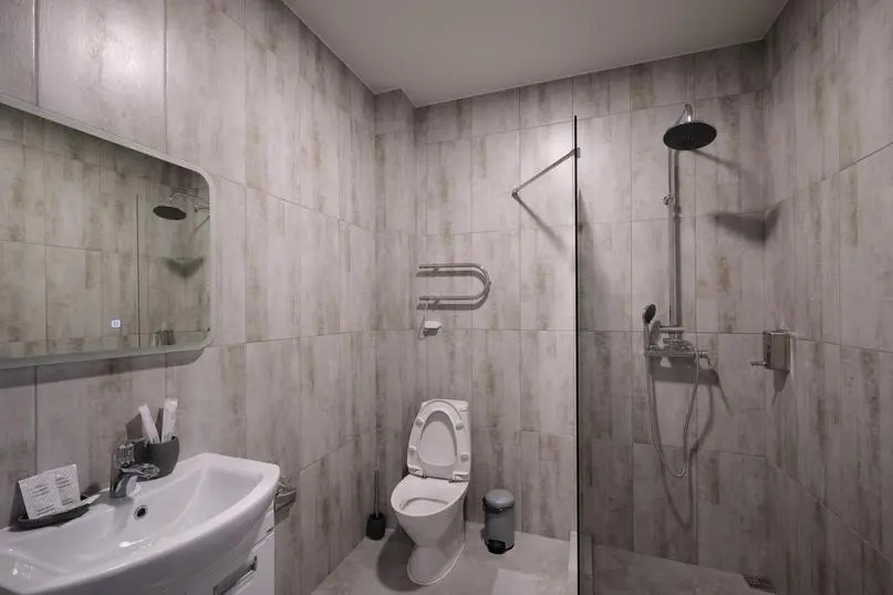 Останавливались с двумя детьми, нам дали огромный номер с просторной ванной комнатой. Тепло и очень чисто, удобная кровать, новое чистое белье, есть тапочки и туалетные принадлежности. В ванной душевая кабина, теплый пол. Младшему ребенку без напоминания поставили детскую кроватку, старший спал на диване.