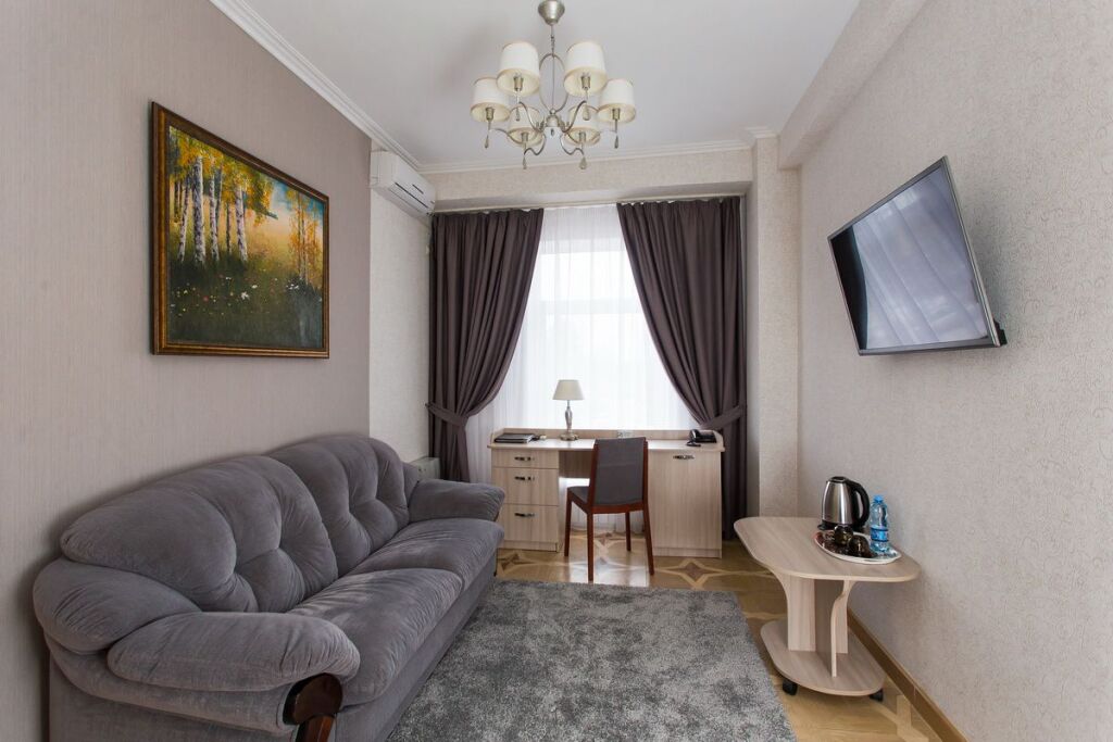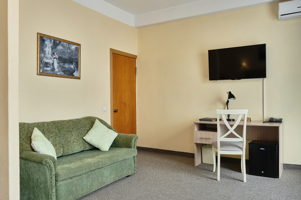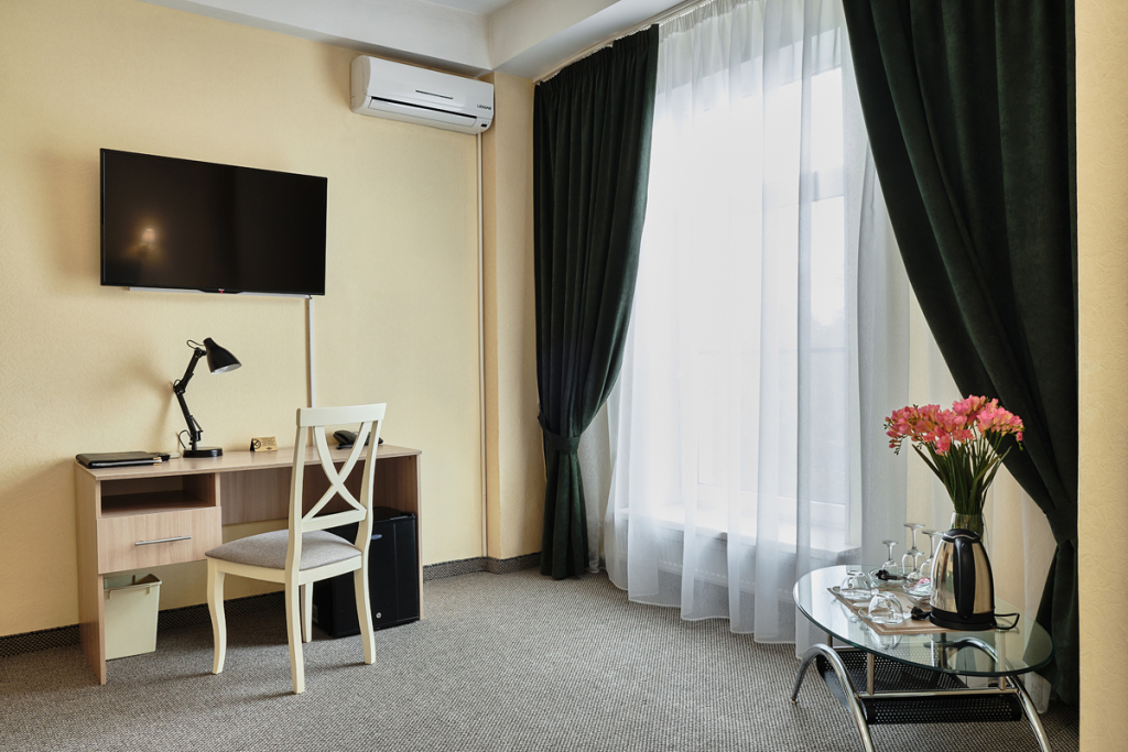 Номер оснащён необходимым, чтобы отдохнуть после долгого дня. Во всех номерах имеется телевизор 40+ каналов, холодильник, фен, кондиционер, ванная комната.