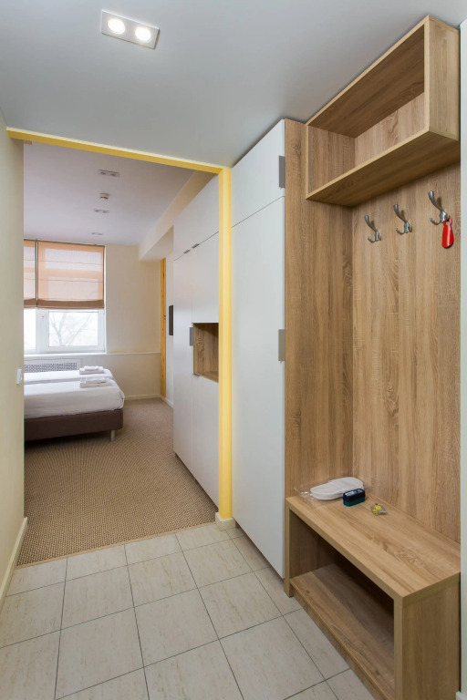 Отель находится на 4 этаже промышленного здания, лифта нет, лестница в целом удобная.