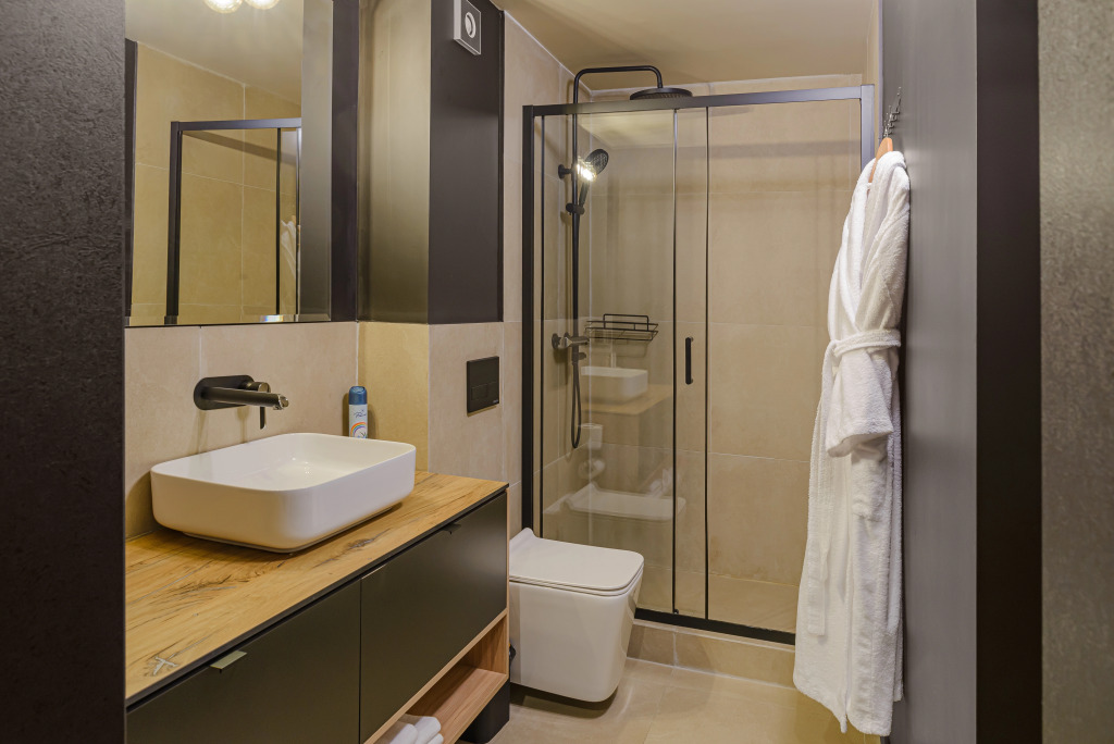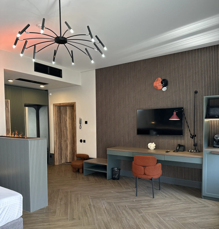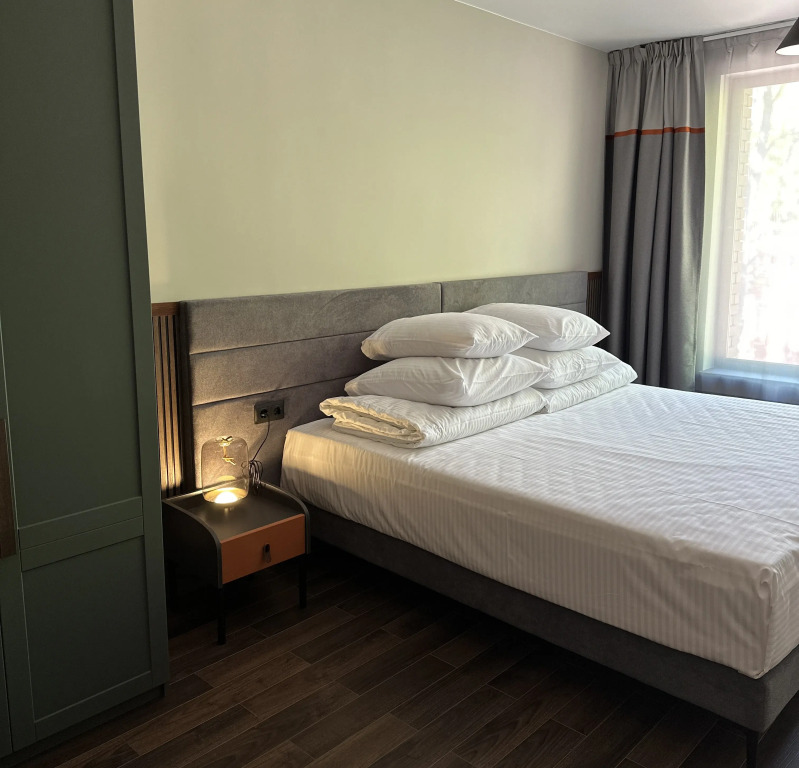 В номере гостей ждут телевизор и халат. Оснащение зависит от выбранной категории номера.