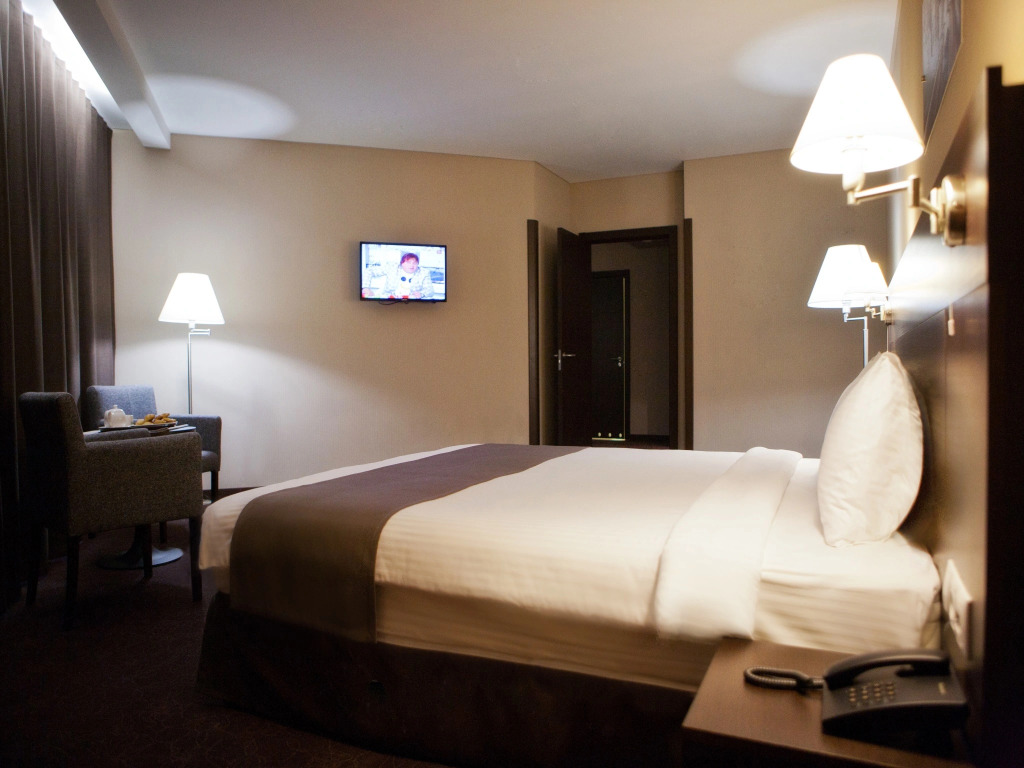 Номера оснащены кроватями, ортопедическими матрасами, постельным бельём, шкафами, рабочей зоной, кабельным телевидением с USB разъемом, кондиционером, мини-баром, чайной станцией, сейфом и телефоном. Также к услугам гостей меню подушек.