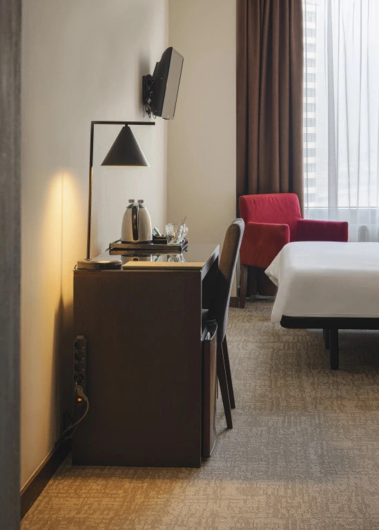 Для тех, кто в поездках любит оставаться в физической форме, не менять режим и своих привычек, есть профессиональный фитнес-зал с тренажерами на все группы мышц и финской сауной. Центр расположен в соседнем здании, в 50-ти метрах от отеля. Также есть спортивный бассейн, расположенный в пешей доступности от отеля. Он включает 4 дорожки длинной по 25 метров каждая. Услуги бассейна и фитнес-зала – бесплатные, для их посещения необходимо оформить флаер на стойке регистрации.