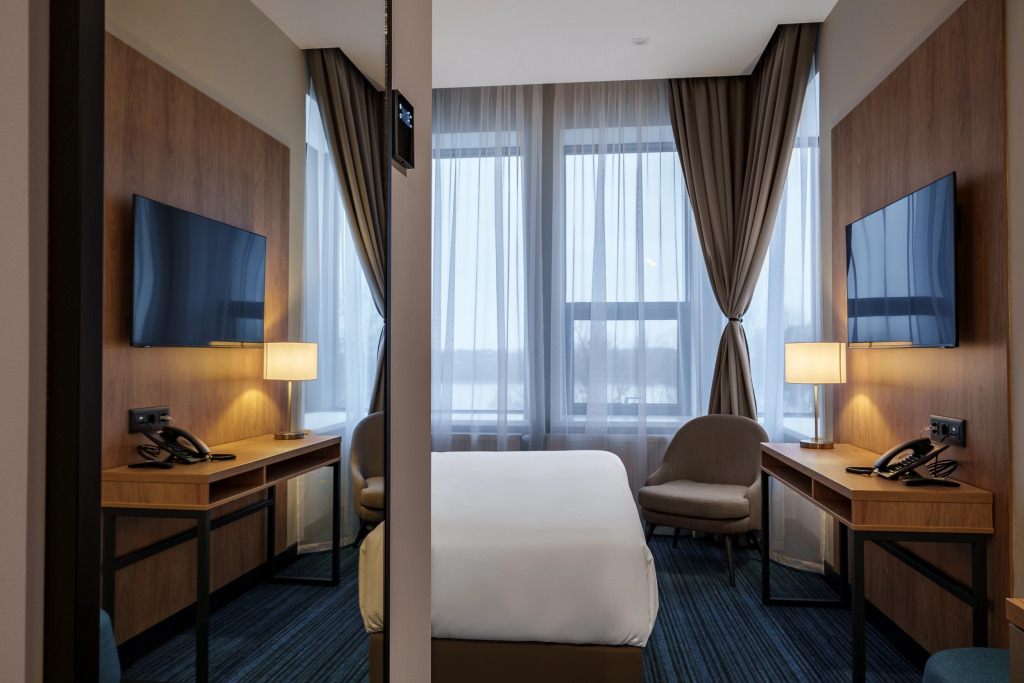 В номере вас будут ждать телевизор, мини-бар и халат. Перечисленные услуги есть не во всех номерах.
